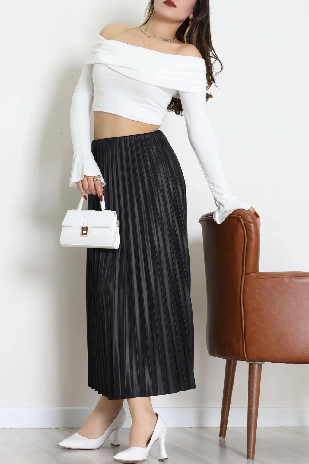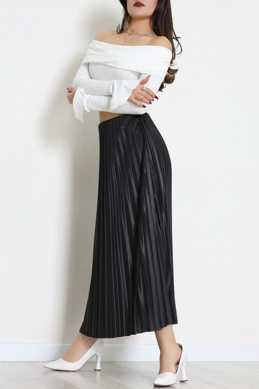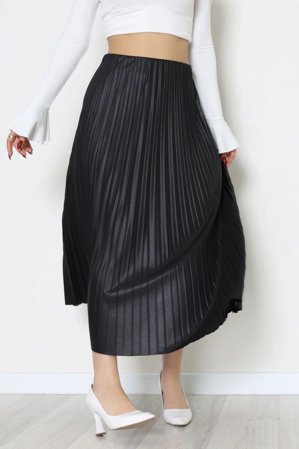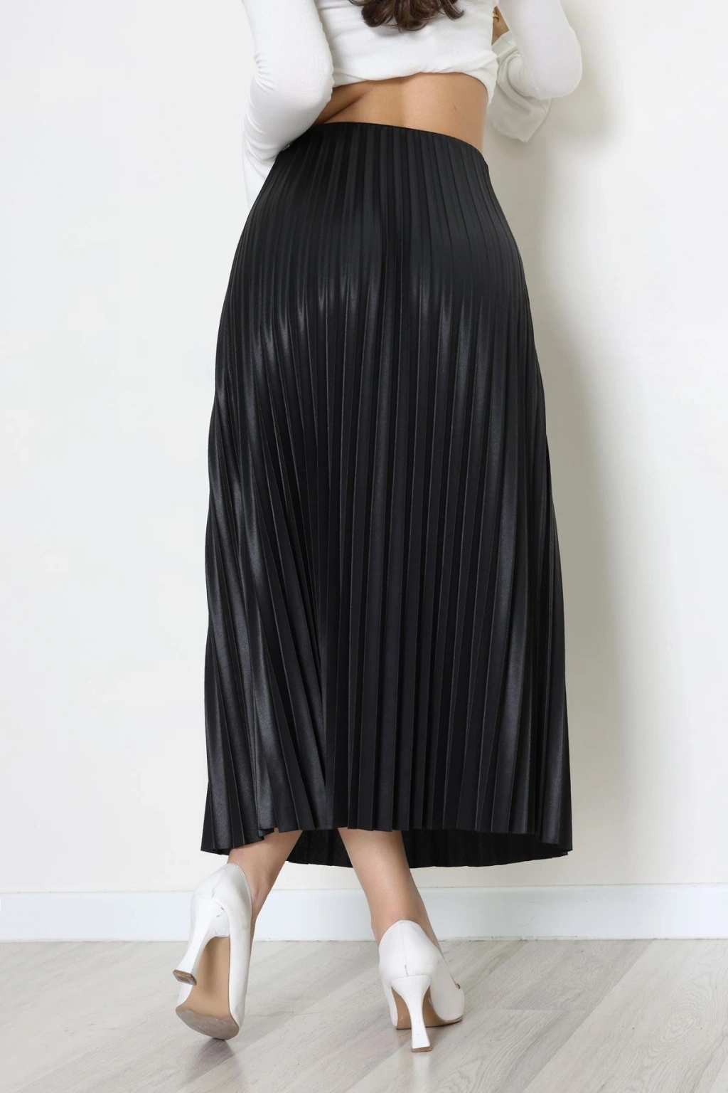 Double Kumaş Kemerli Pileli Etek Siyah - 51236.1920.