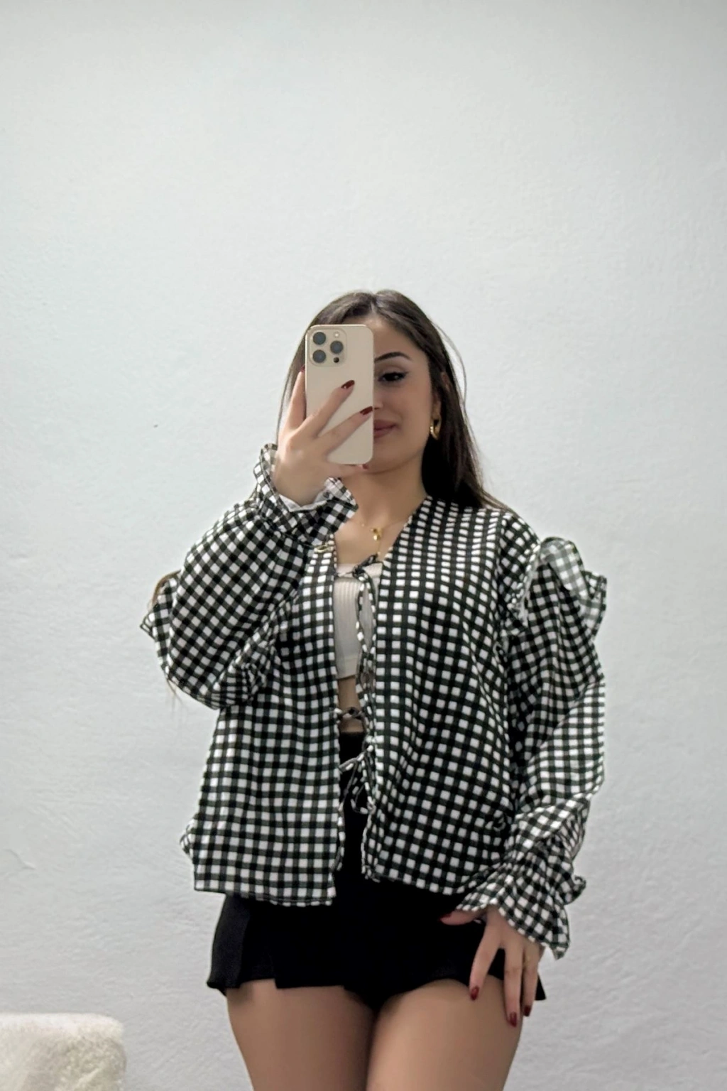 # Pötikare Gömlek Modelleri ## Şık Tasarım ve Rahat Kesim Hafif dokusuyla konfor sunan siyah **pötikare gömlek**, modern bağlama detayı ve volanlarıyla günlük şıklığınızı bir üst seviyeye taşıyor. Bu tasarım, poliviskon kumaşın sunduğu yumuşak tuşeyi estetik çizgilerle başarılı bir şekilde birleştiriyor. Siyah ve beyazın zamansız kontrastını taşıyan bu parça, her ortamda dikkat çekici bir görünüm sağlar. Siyah gömlek arayışında olanlar için ideal bir seçenek sunan modelimiz, konforlu yapısıyla gün boyu rahat hissettirir. Uzun kollu yapısı ve lastikli bilek detayları, hareket özgürlüğü tanırken zarif bir duruş sergiler. Omuz kısmındaki volan detayları, modele hareketli bir hava katarak klasik **pötikare gömlek** desenini modern bir formla yeniliyor. **Poliviskon kumaş** içeriği sayesinde kolay ütülenen ve nefes alan bir yapıya sahip olan bu tasarım, uzun süreli kullanım imkanı verir. Kaliteli dikimi ve özgün ön bağlama stili ile dikkat çeken bu ürün, bütçenizi zorlamayan ekonomik seçenek olarak öne çıkıyor. Satın almak için hemen sepete ekleyin.