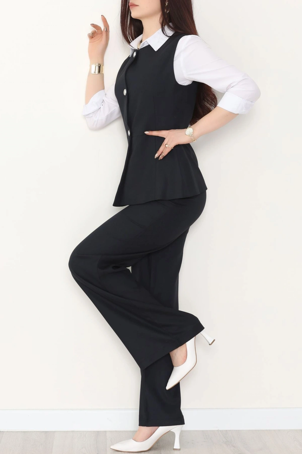 Raporlu İnterlok Çerçeve Yaka İkili Takım Siyah - 51090.1567.
