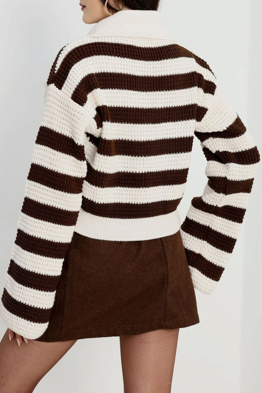 Polo Yaka Çizgili Hırka Kahvelatte - 1530.1577.