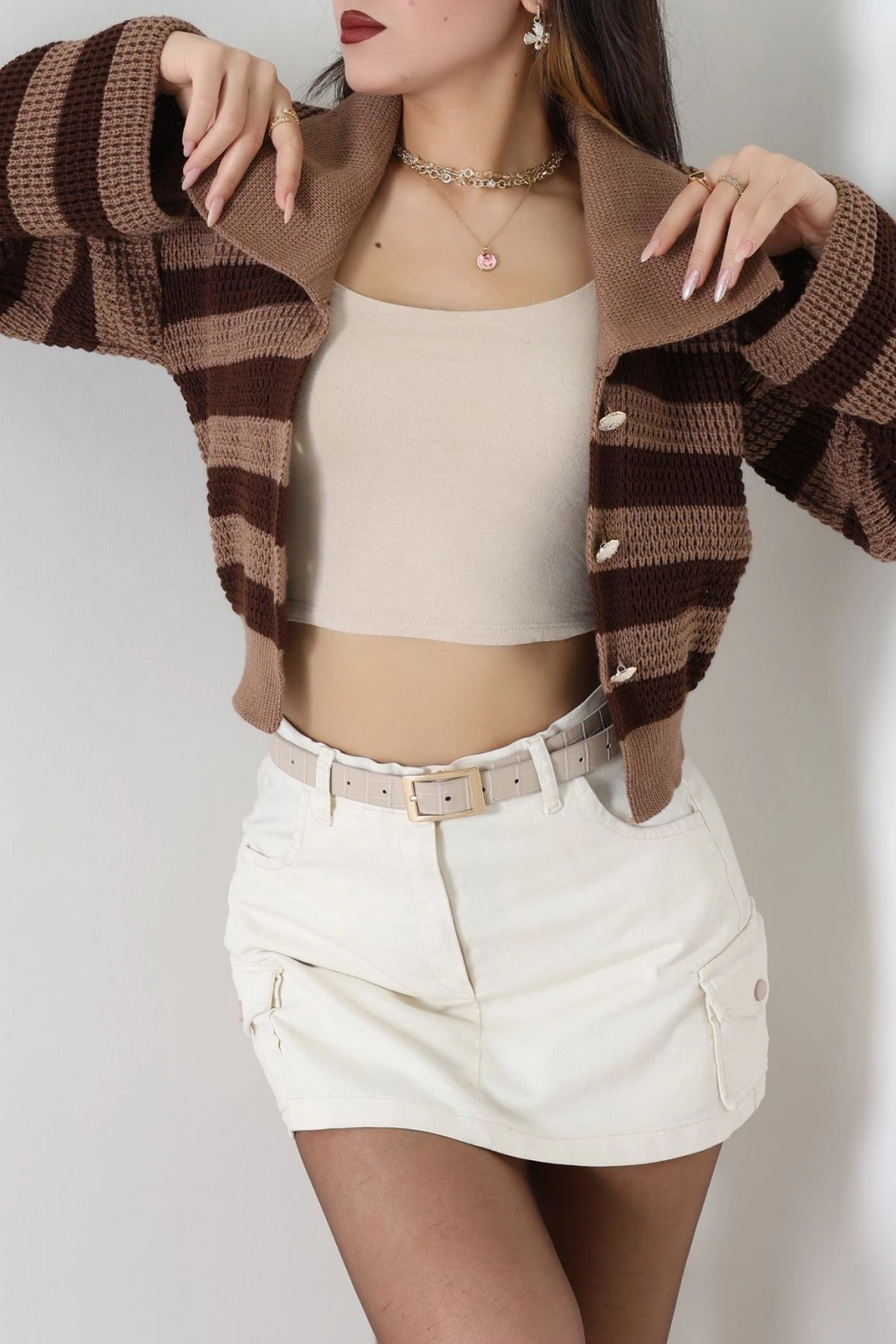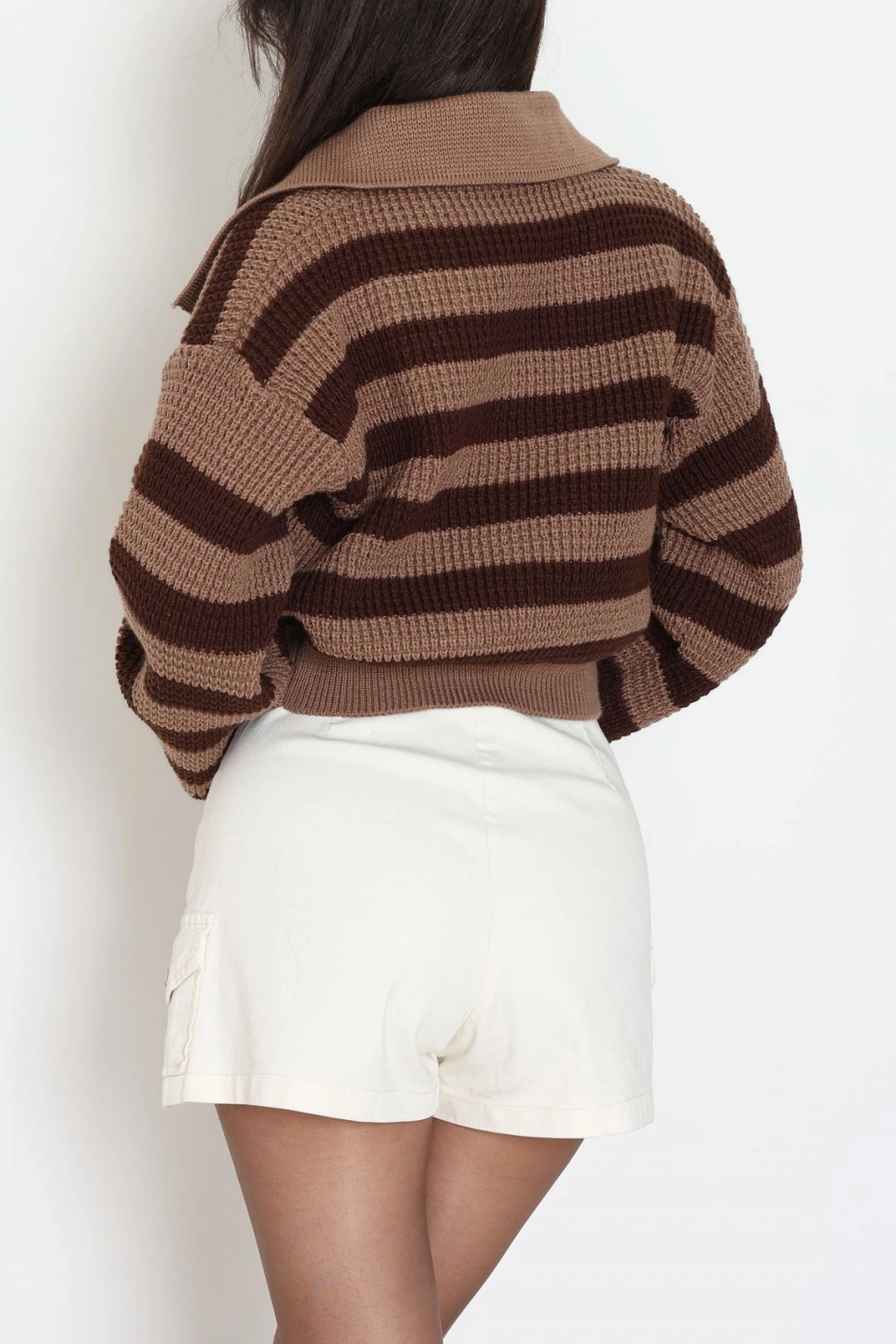 Polo Yaka Çizgili Hırka Mochakahve - 1530.1577.