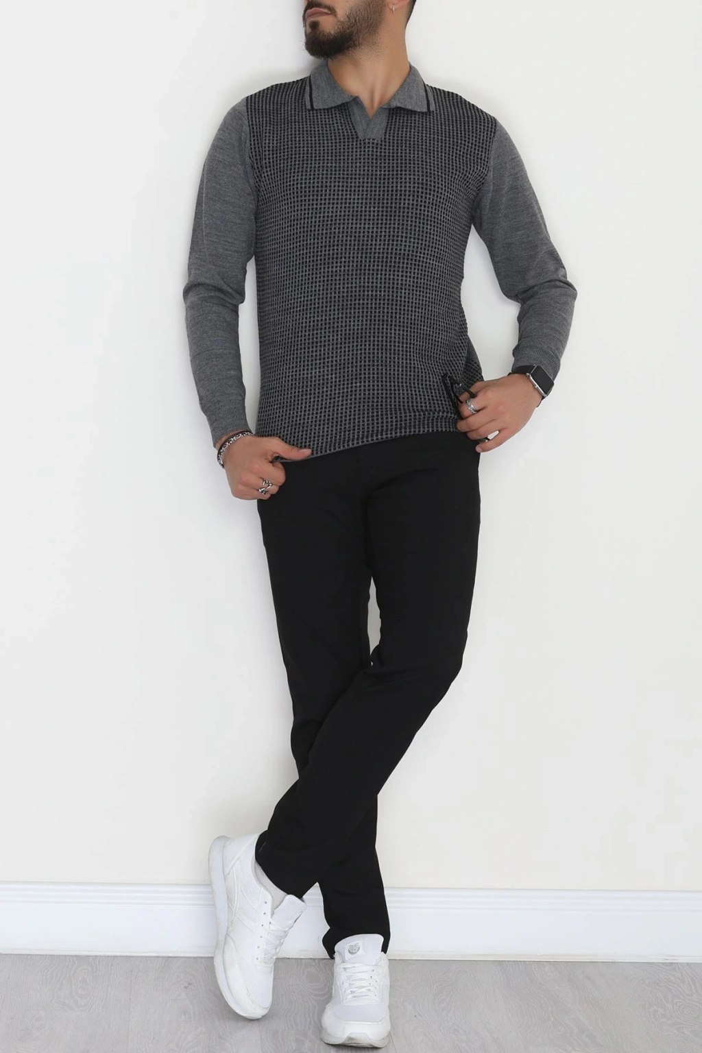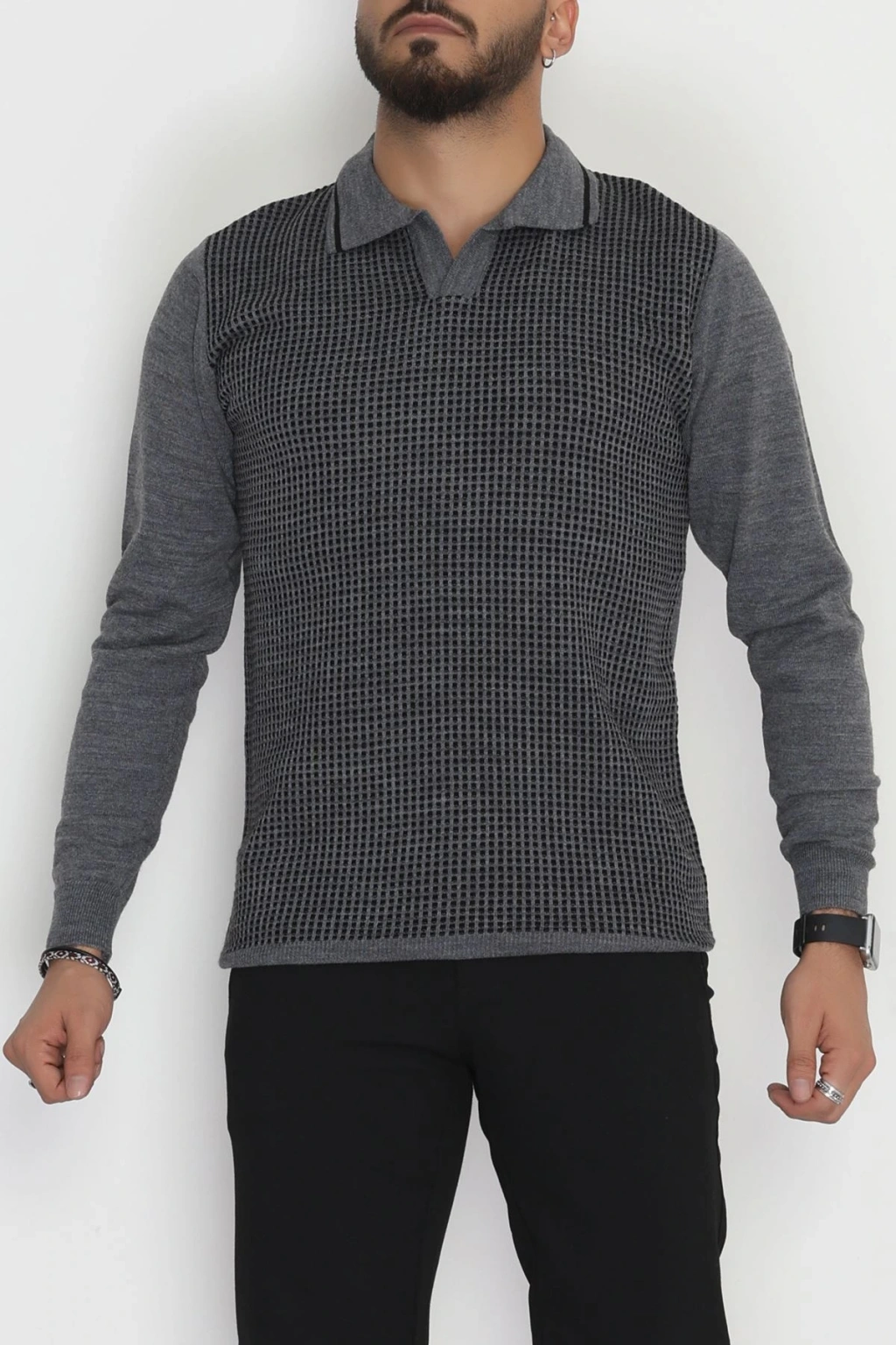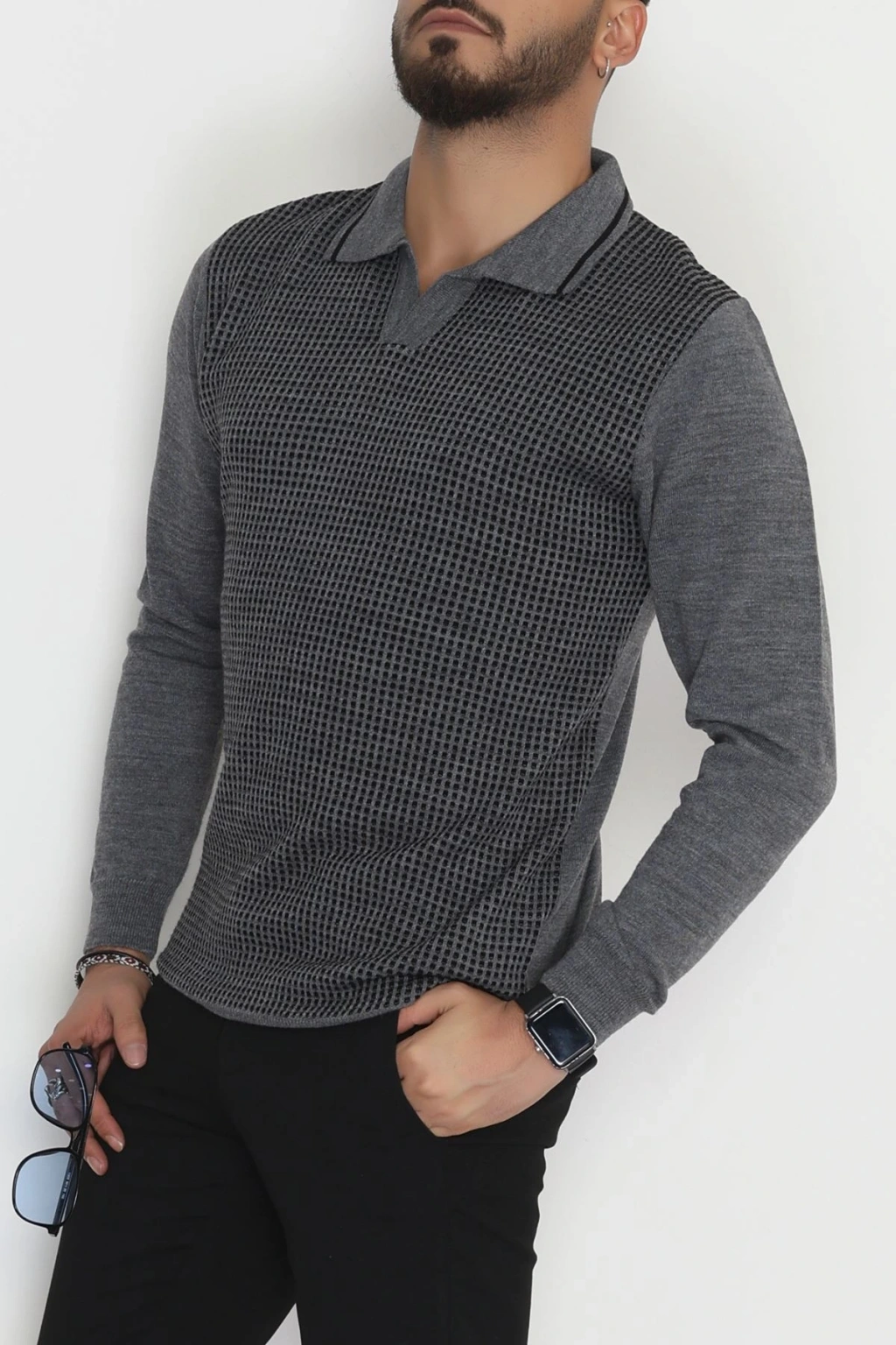 Bisiklet Yaka Desenli Erkek Triko Antrasit - 70776.1766.