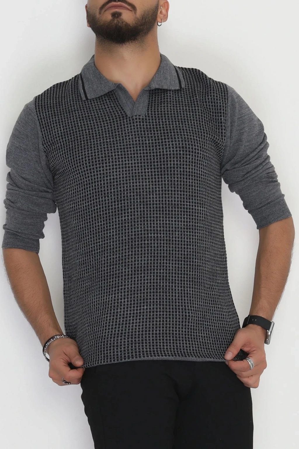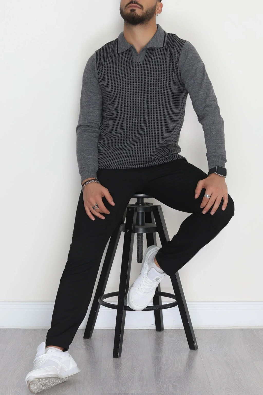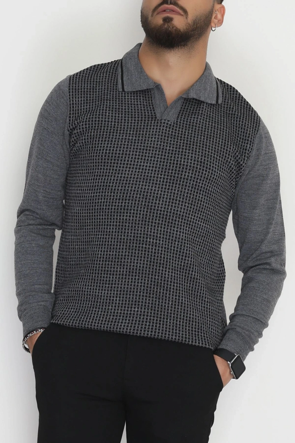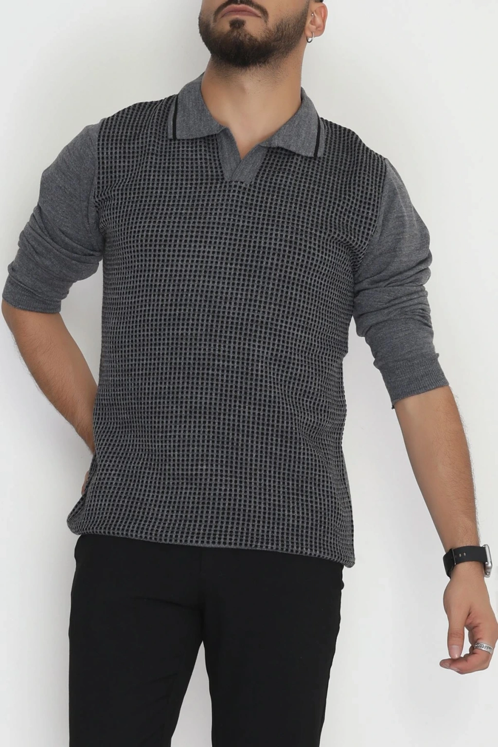 Bisiklet Yaka Desenli Erkek Triko Antrasit - 70776.1766.