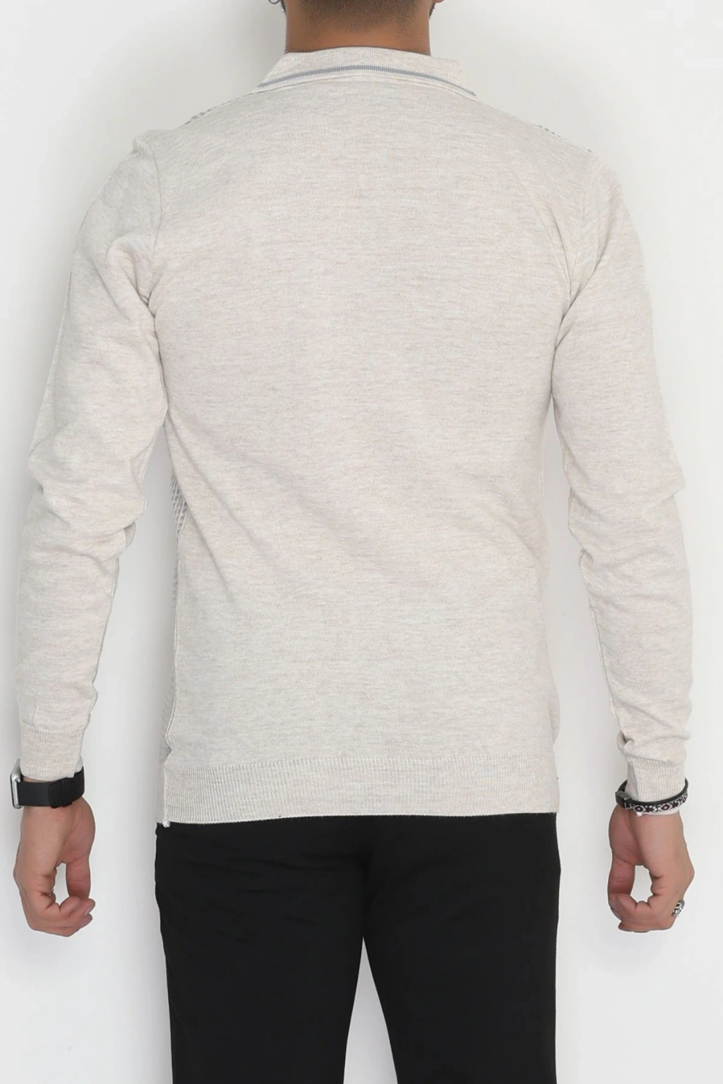 Yakası Fermuarlı Erkek Triko Taş - 2540.2052.