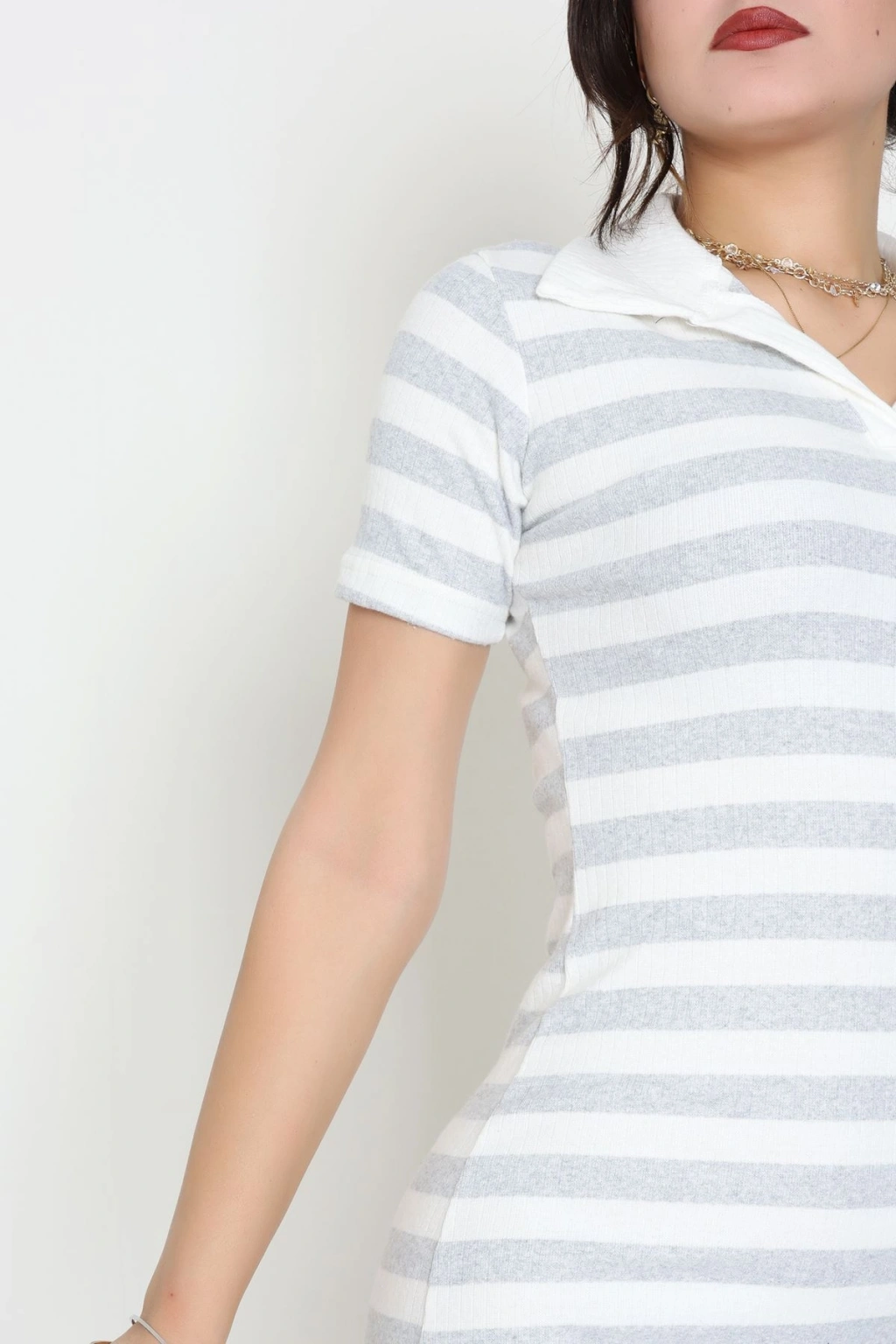 Polo Yaka İnterlok Elbise Elbise Gribeyaz - 70836.1567.