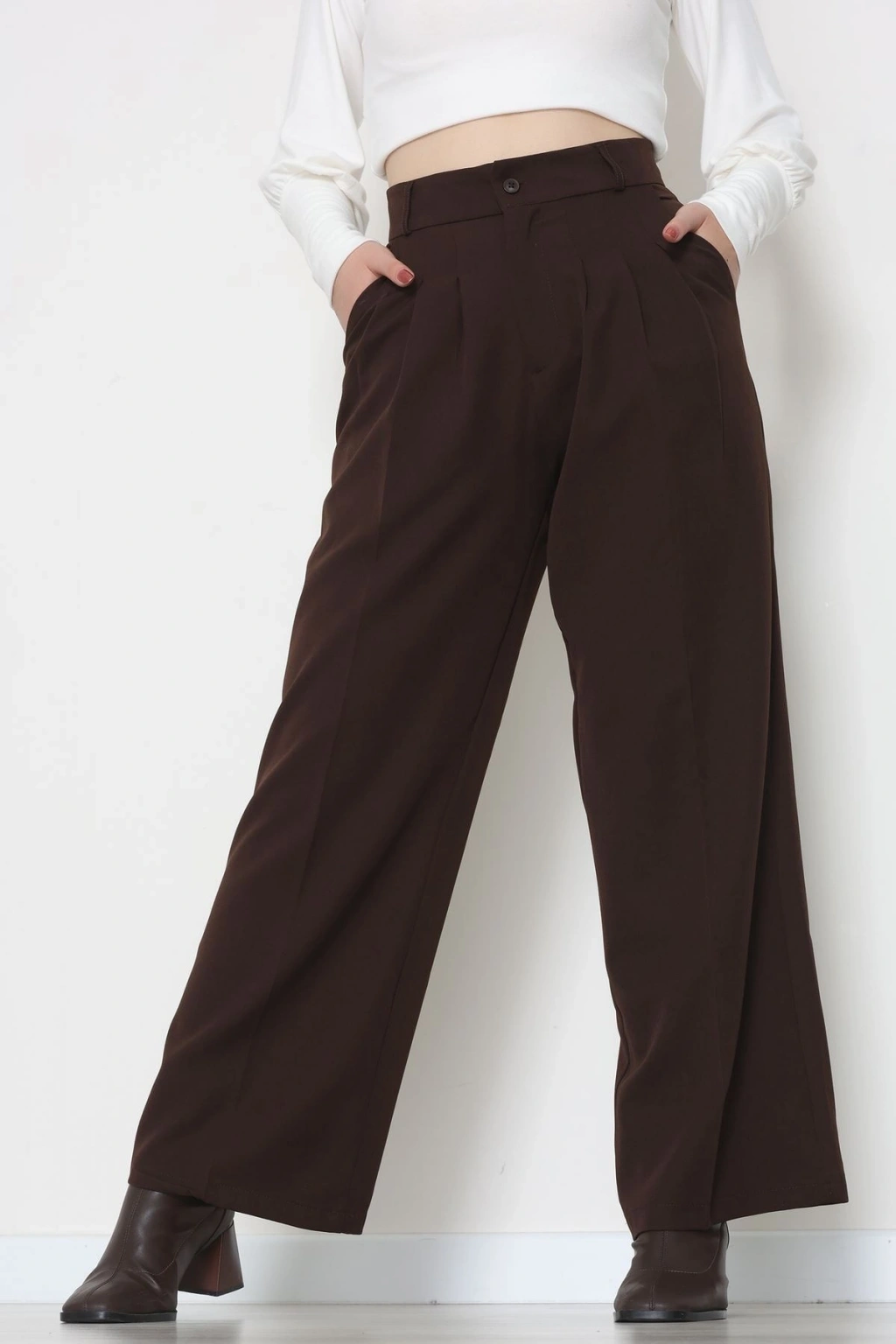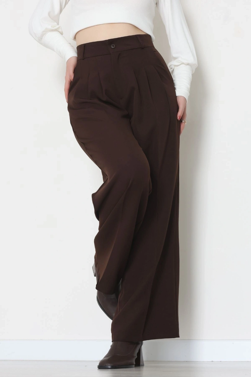 Premium Pileli Palazzo Pantolon Acıkahve - 51609.683.