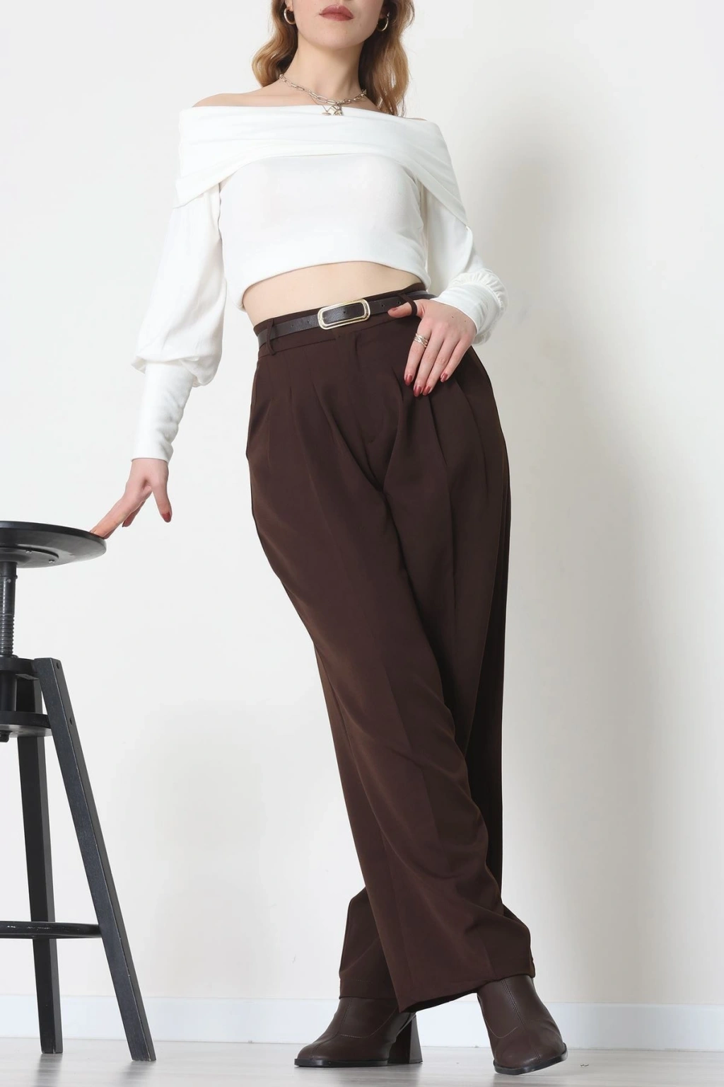 Dabıl Kumaş Beli Bağcıklı Pantolon Kahve - 51615.683.