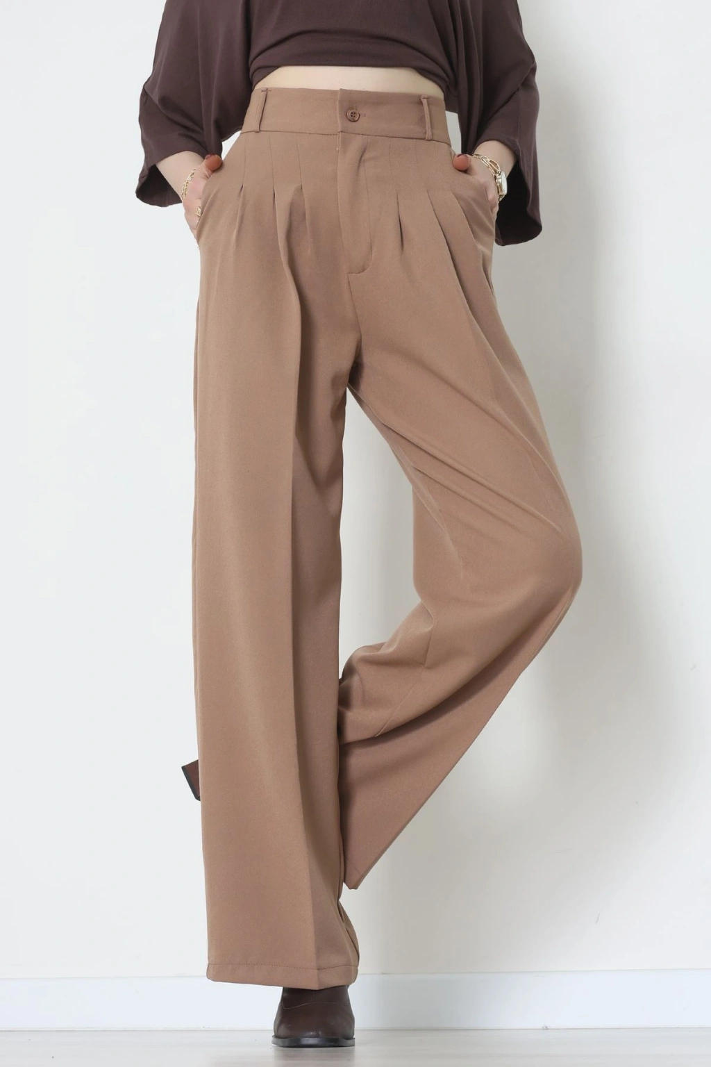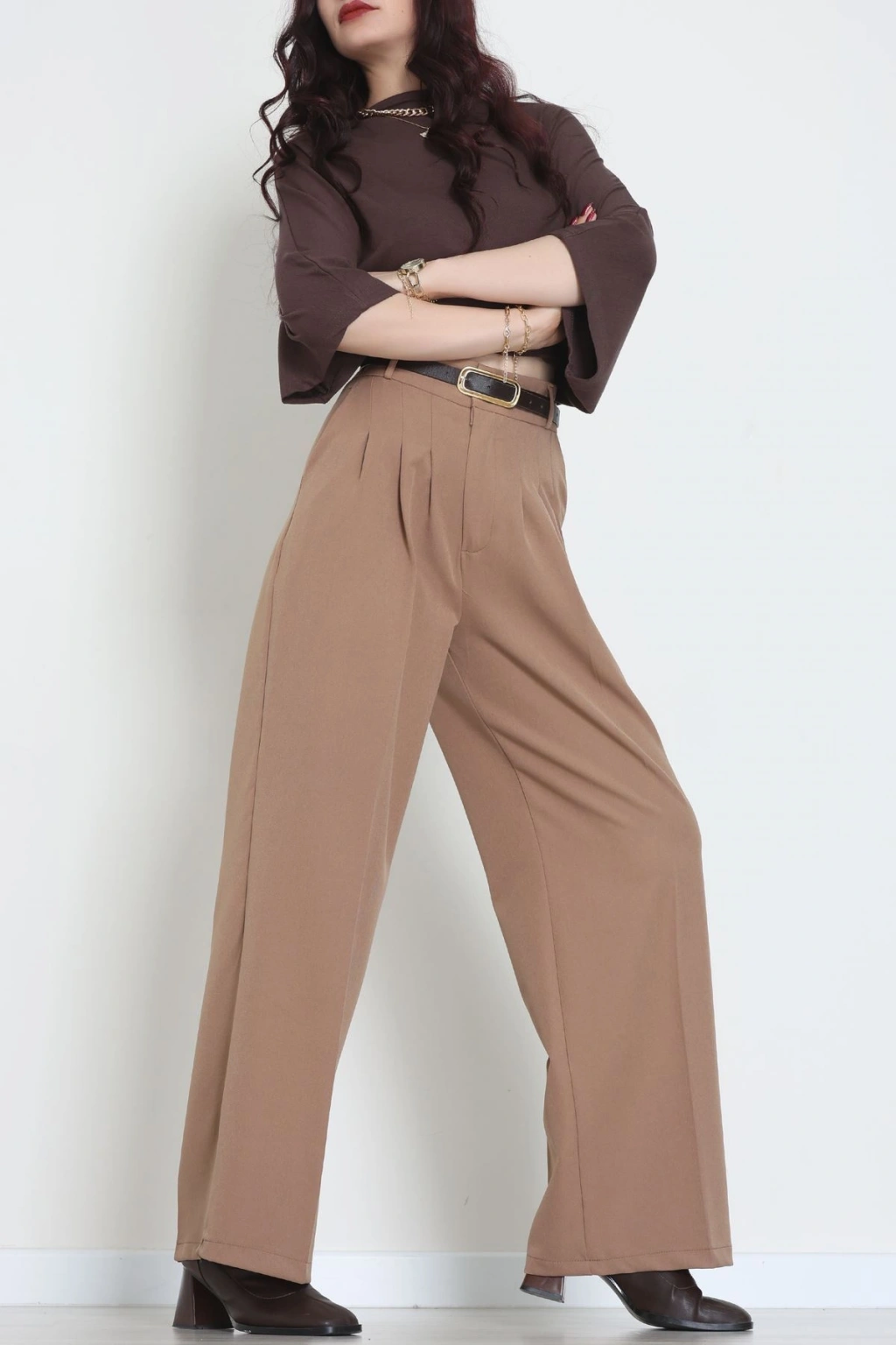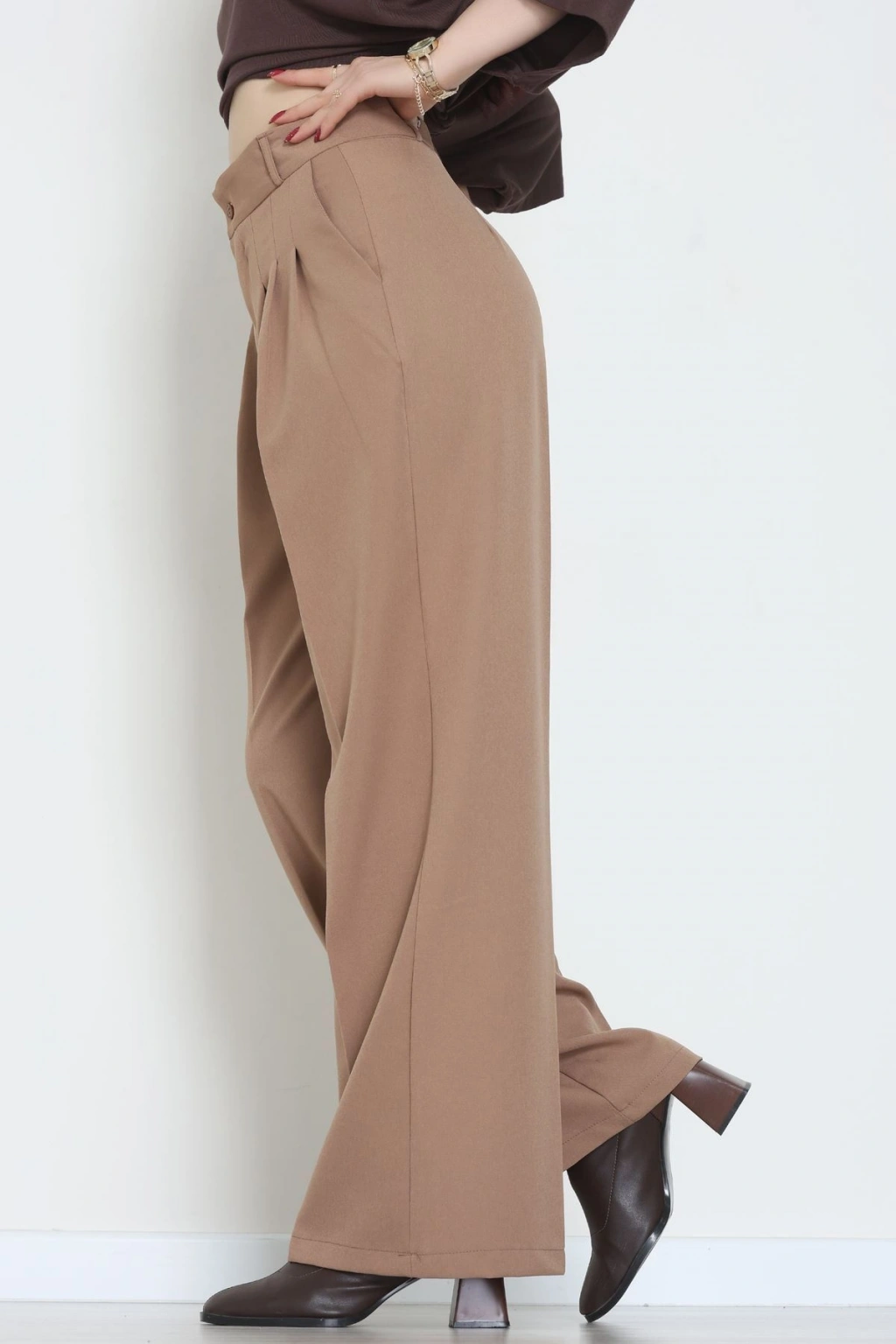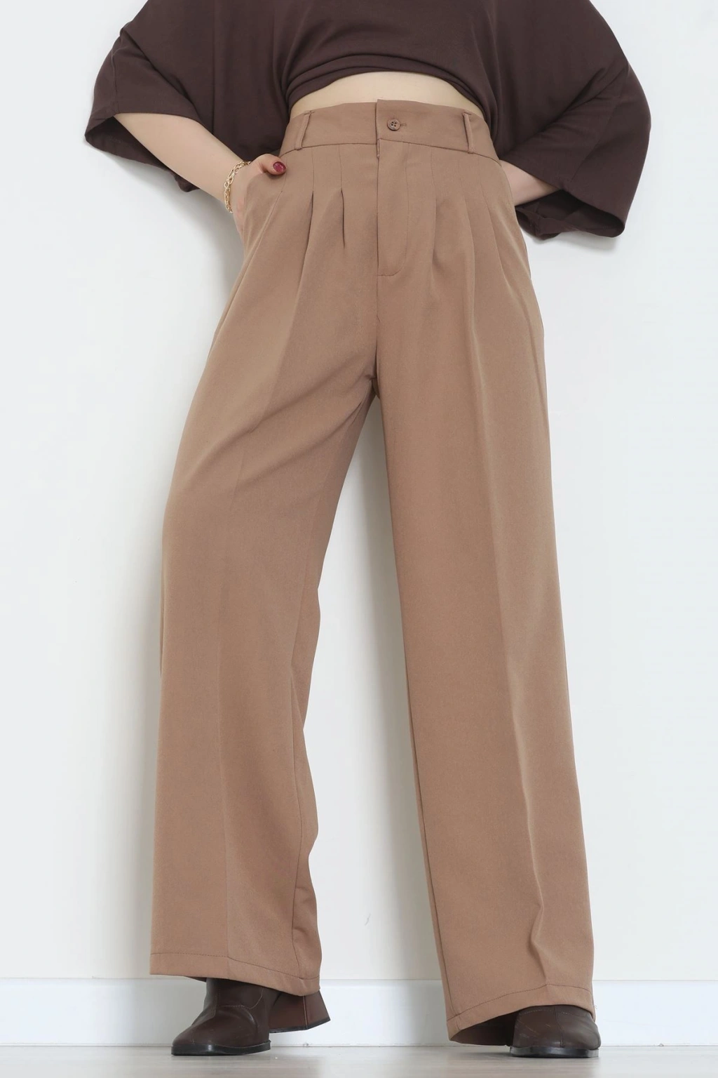 Zra Krep Lastikli Çımalı Pantolon Acıkahve - 51251.1837.