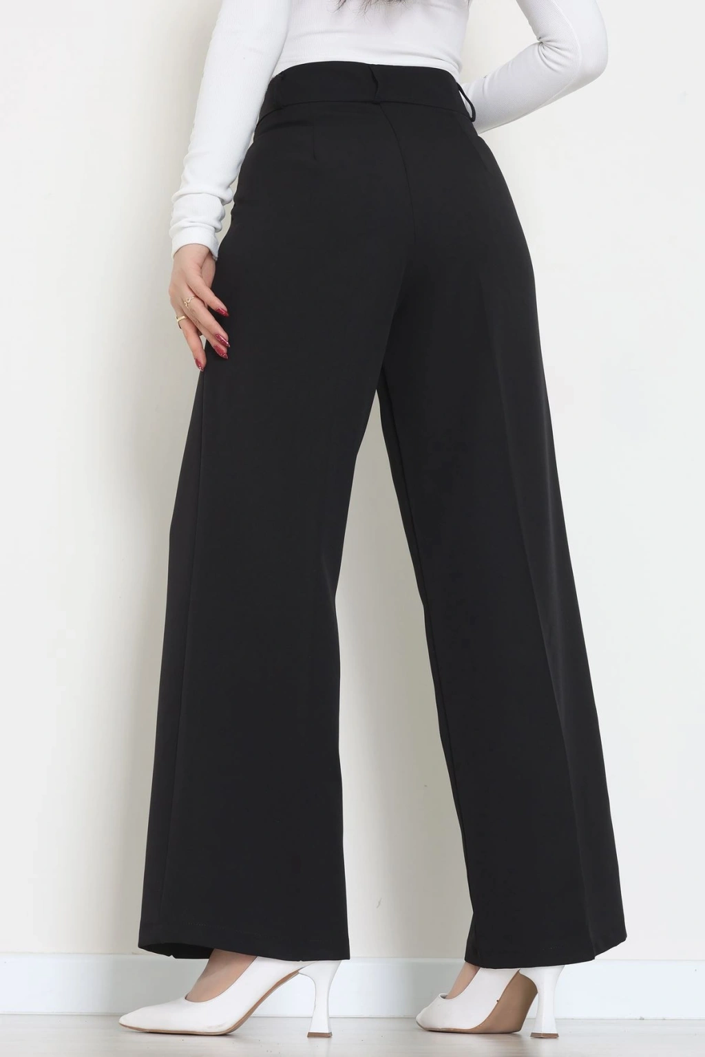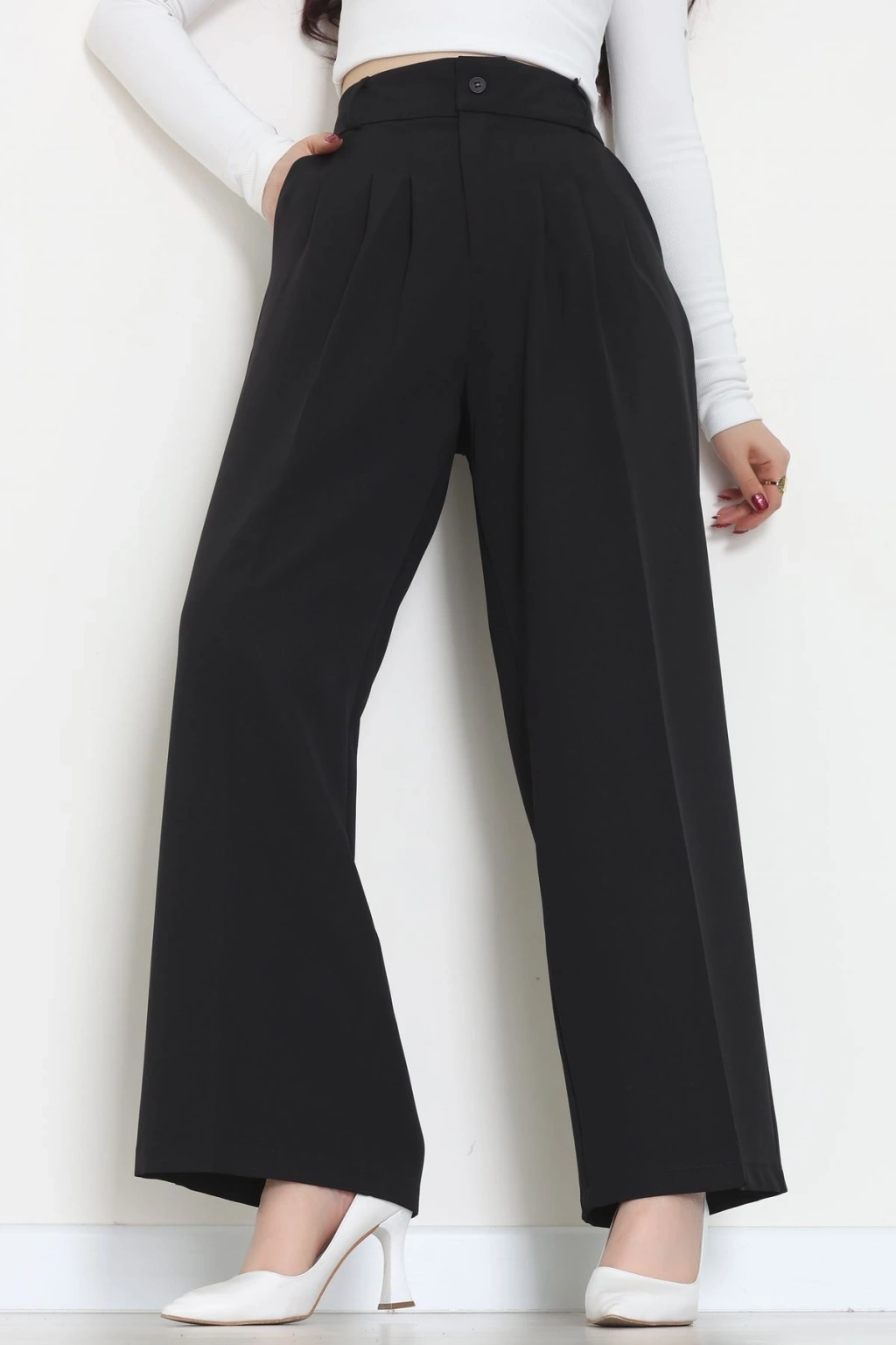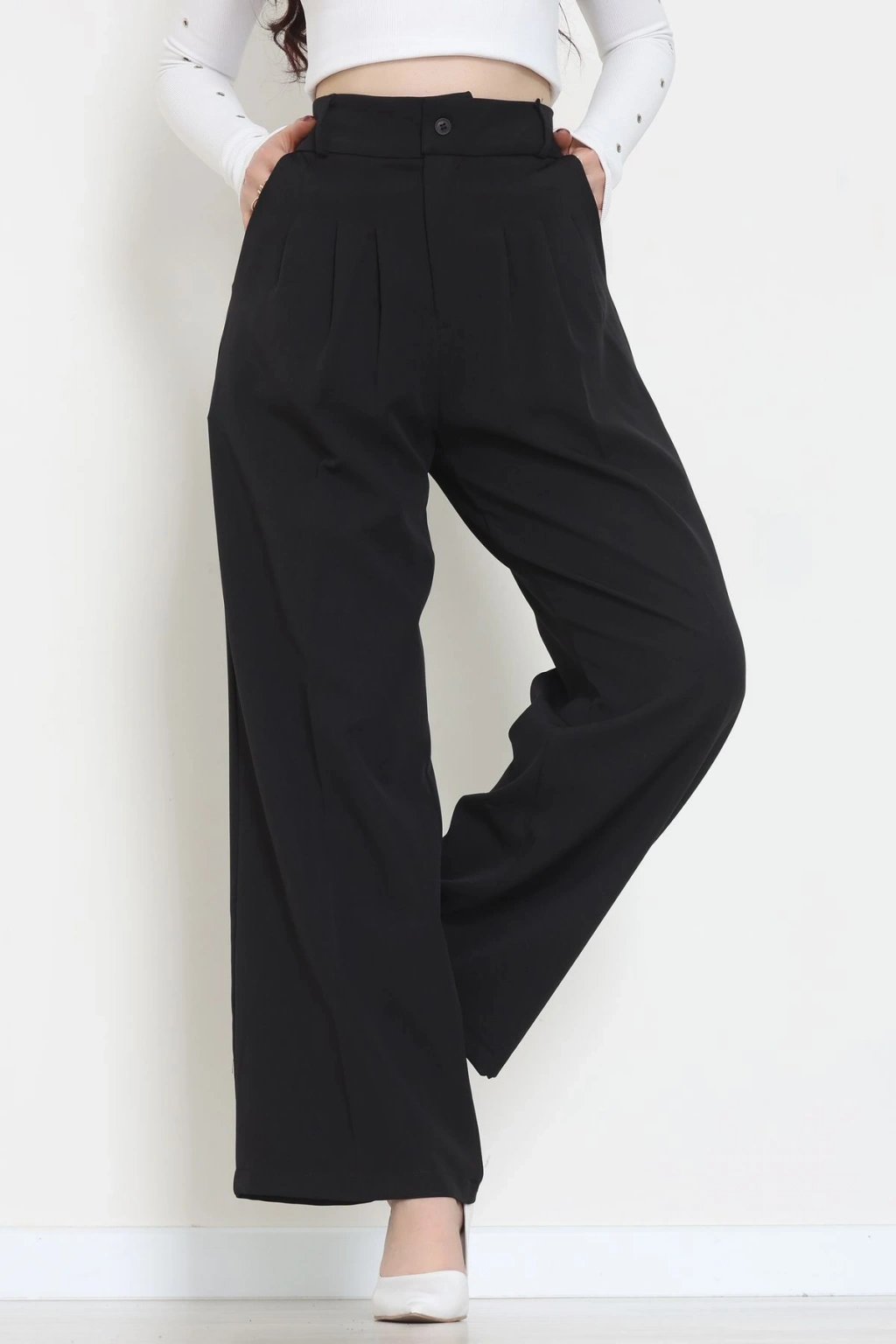 Premium Pileli Palazzo Pantolon Siyah - 51609.683.