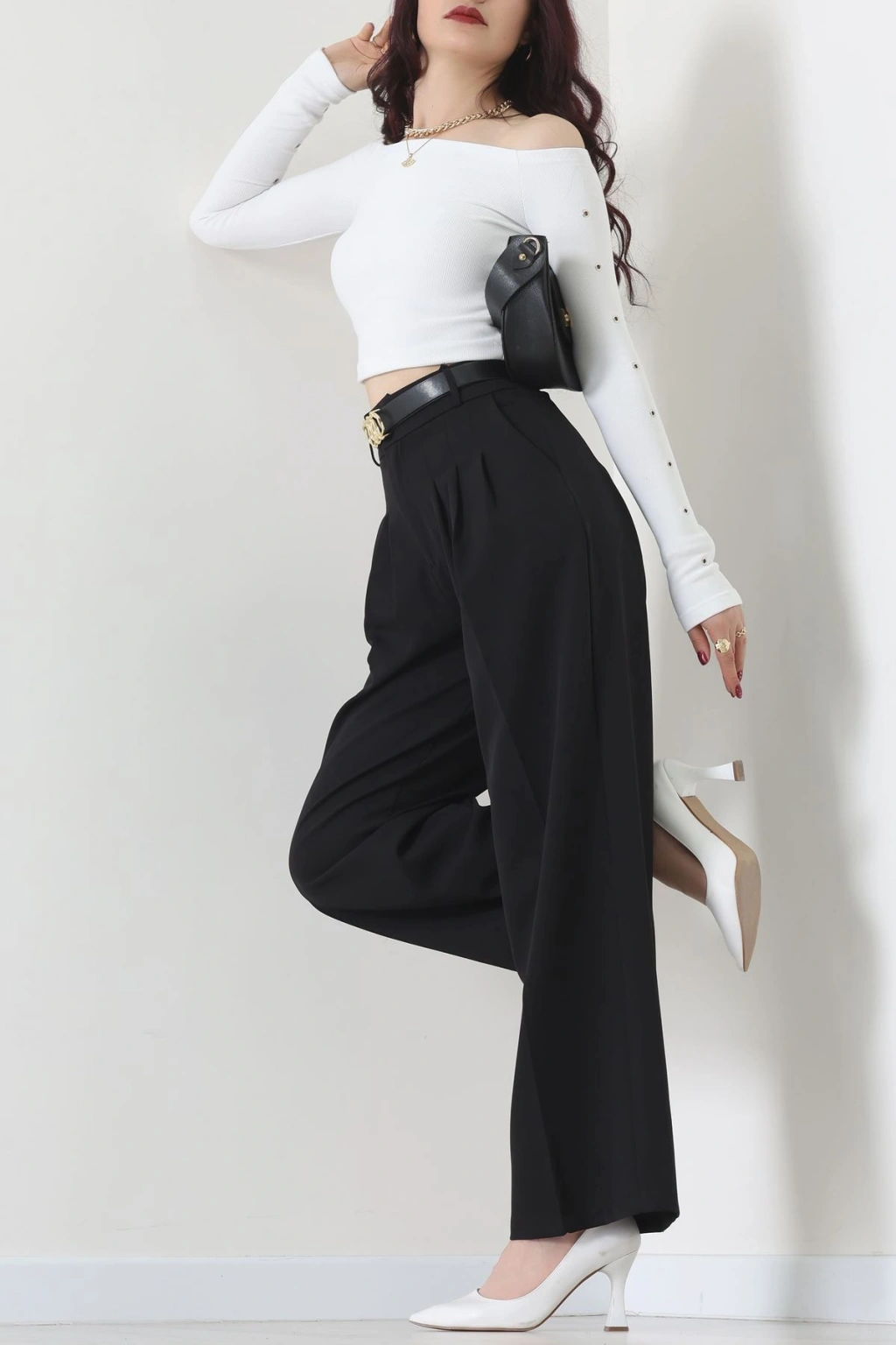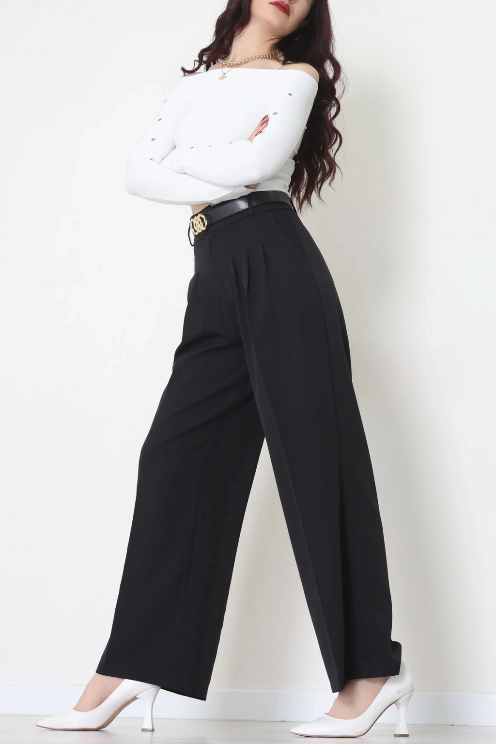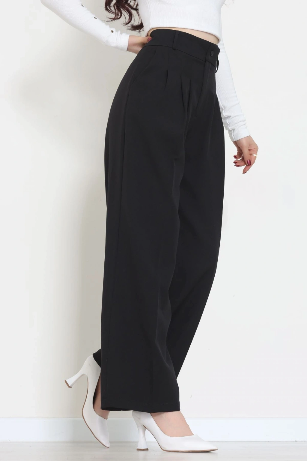 Premium Pileli Palazzo Pantolon Siyah - 51609.683.