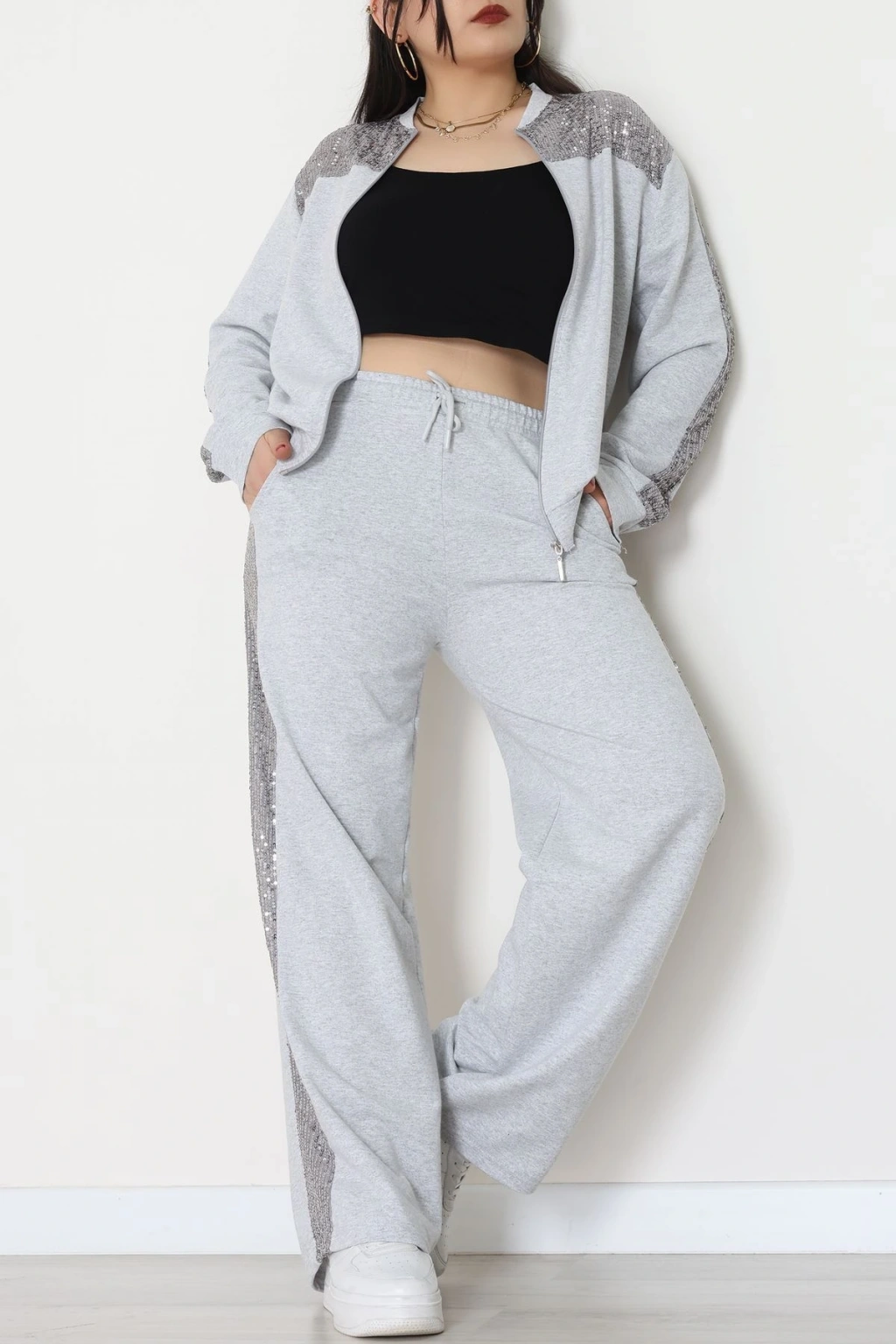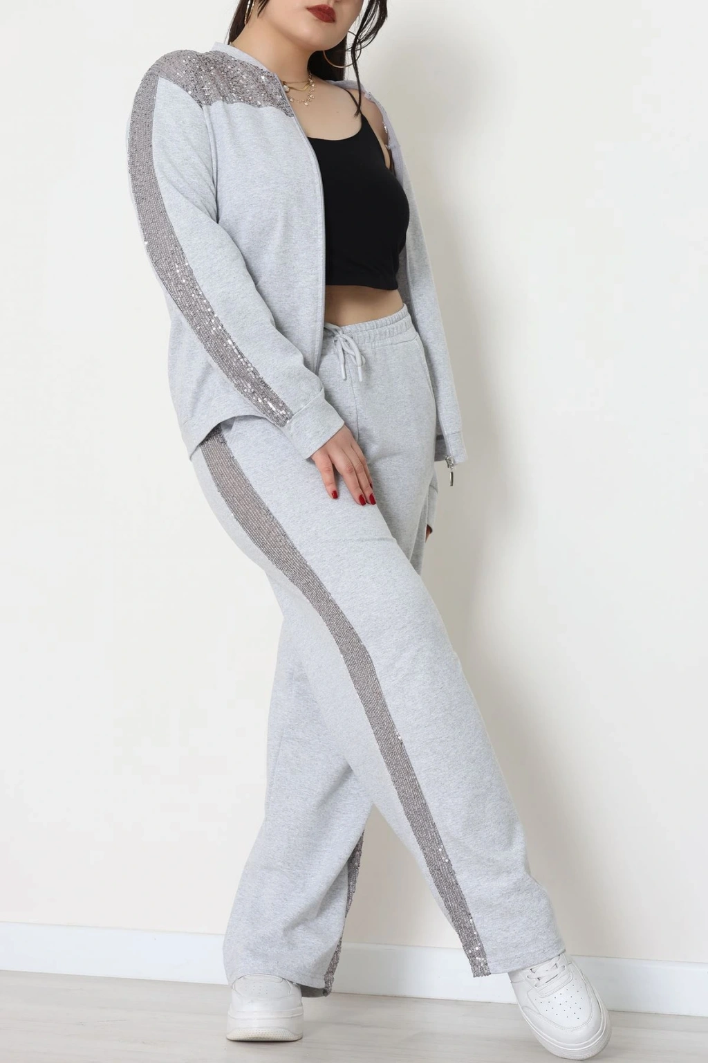 Pul Garnili 2 İplik Büyük Beden Eşofman Takımı Gri - 52108.1567.