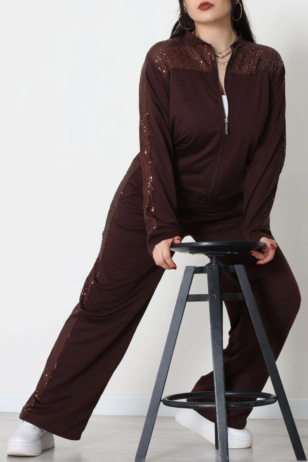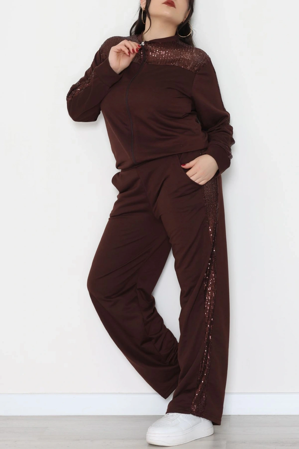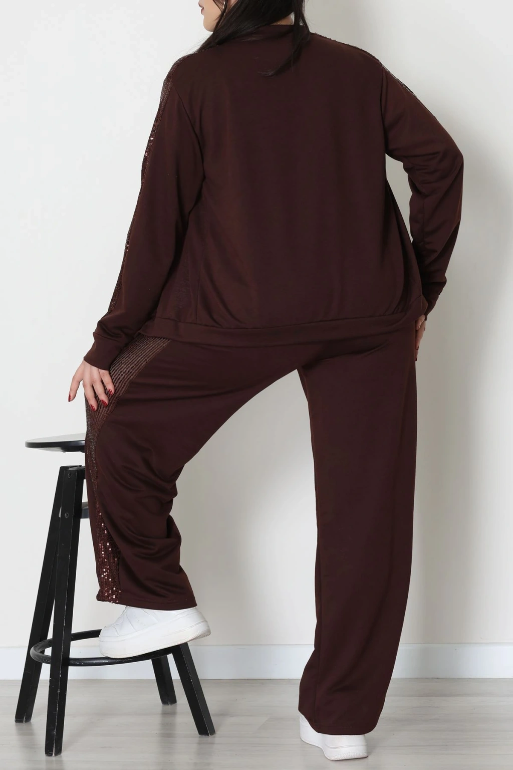 Pul Garnili 2 İplik Büyük Beden Eşofman Takımı Kahve - 52108.1567.