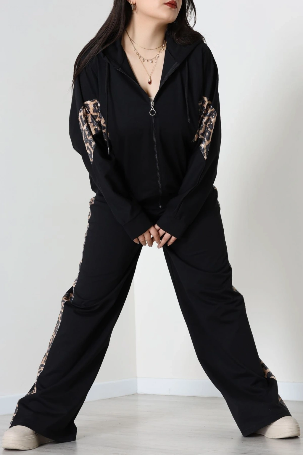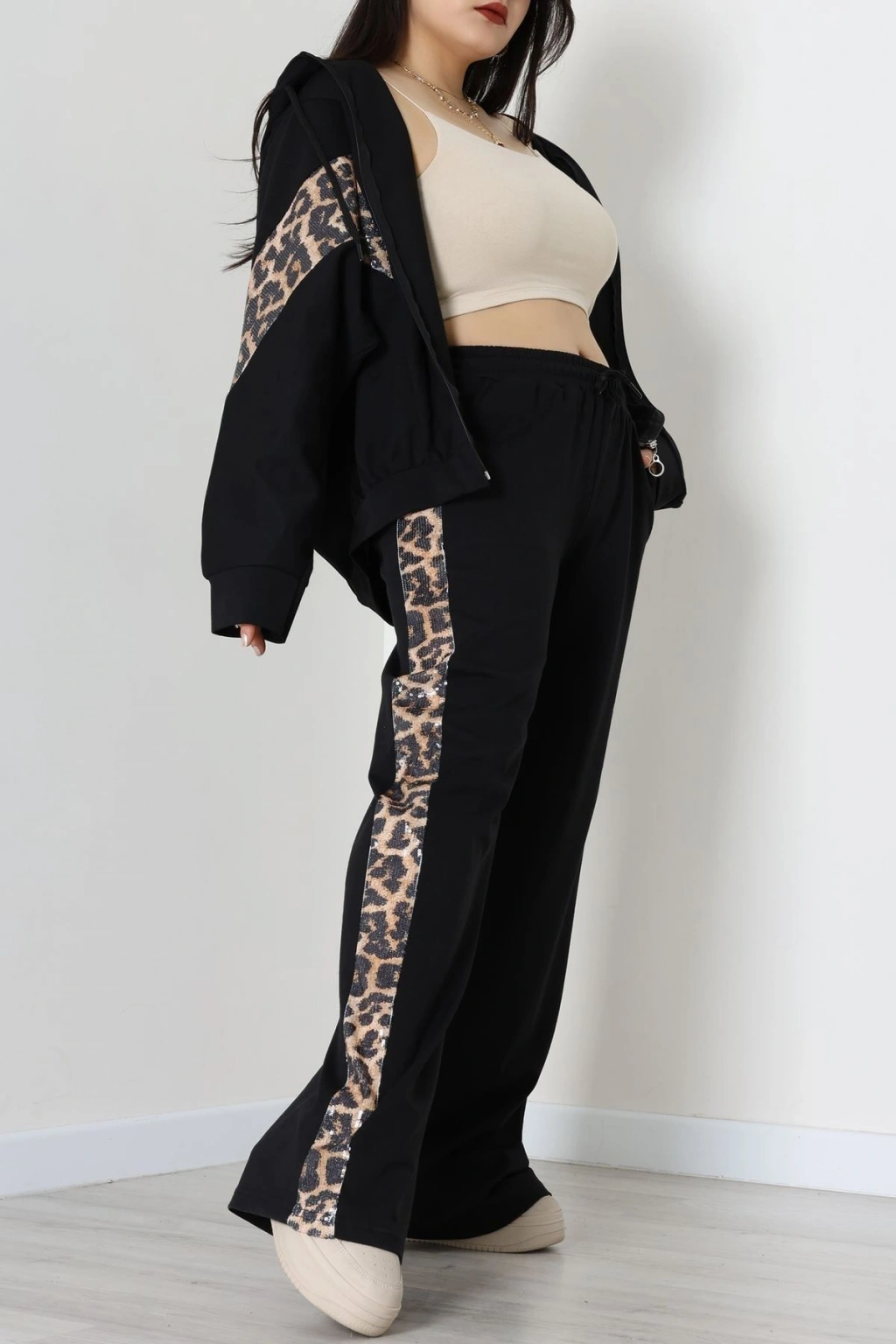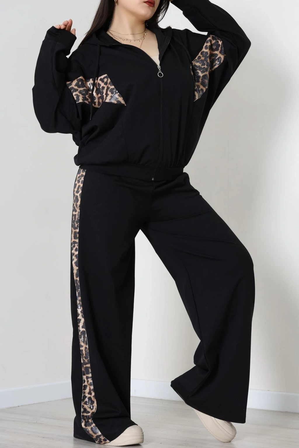 Süet Düğmeli Pijama Takımı Leopar - 31876.1049.