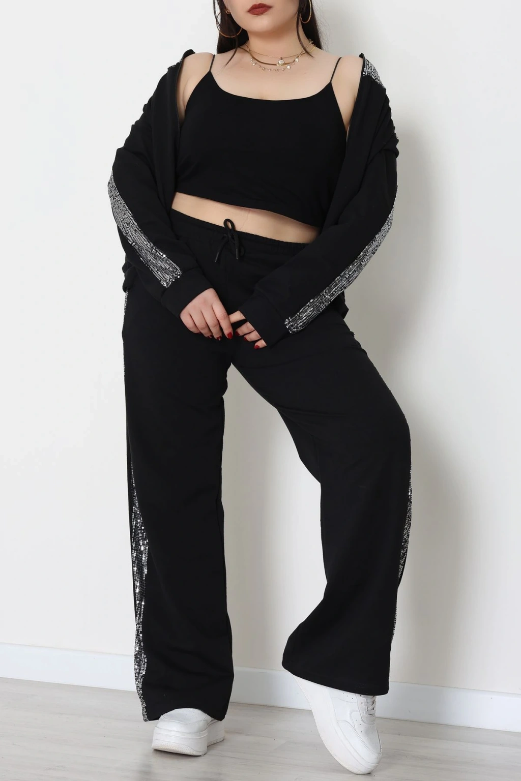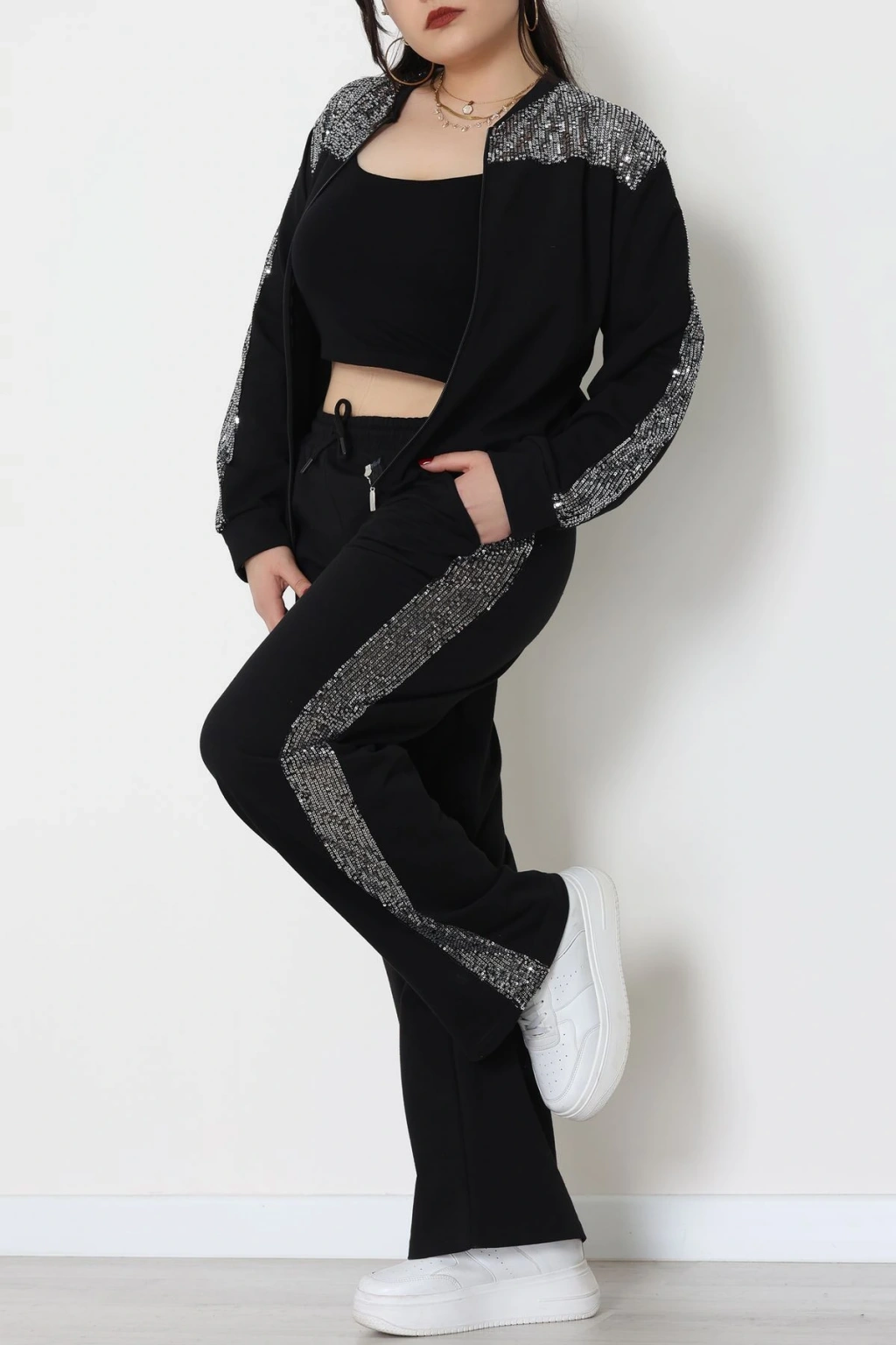 Pul Garnili 2 İplik Büyük Beden Eşofman Takımı Siyahgümüş - 52108.1567.