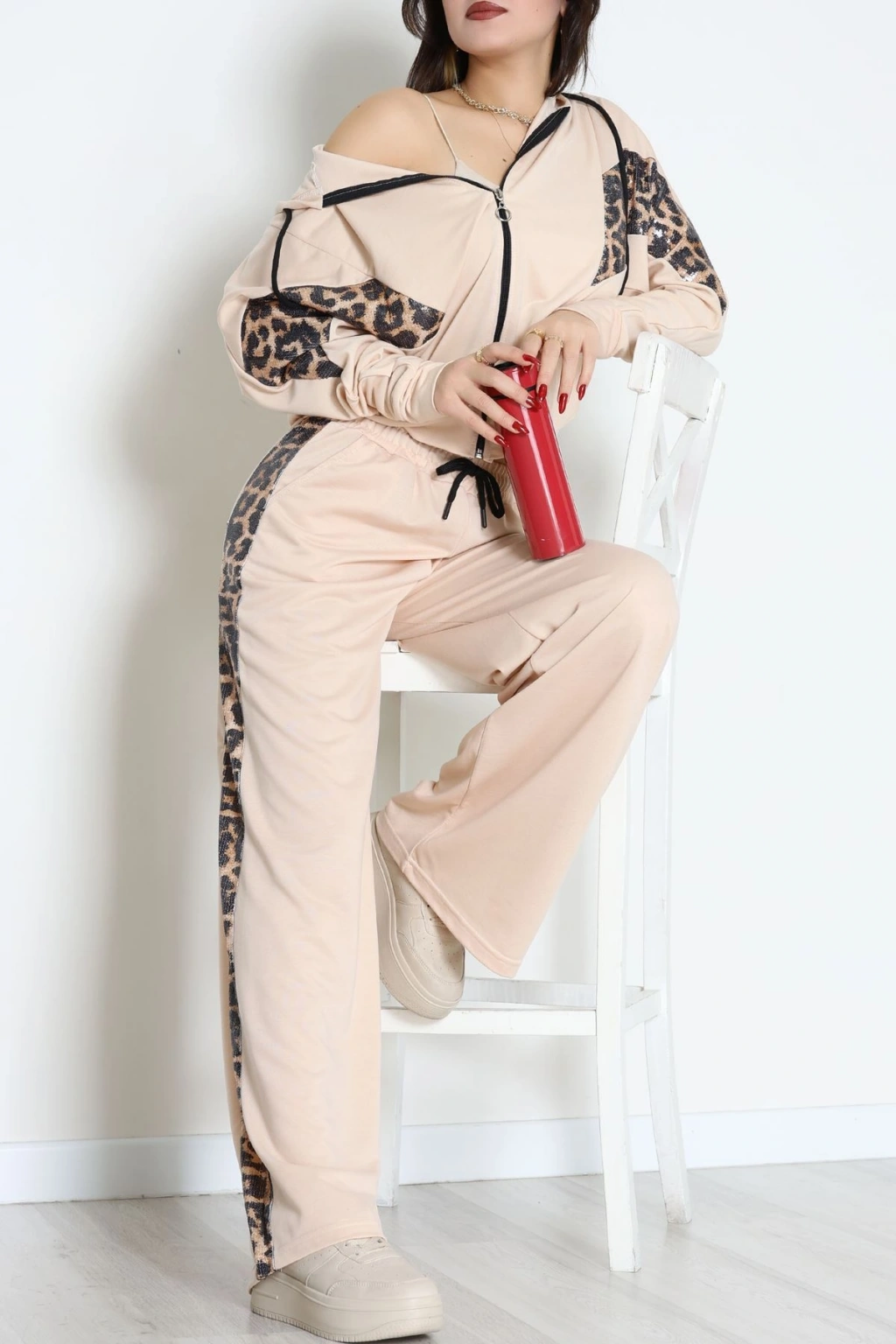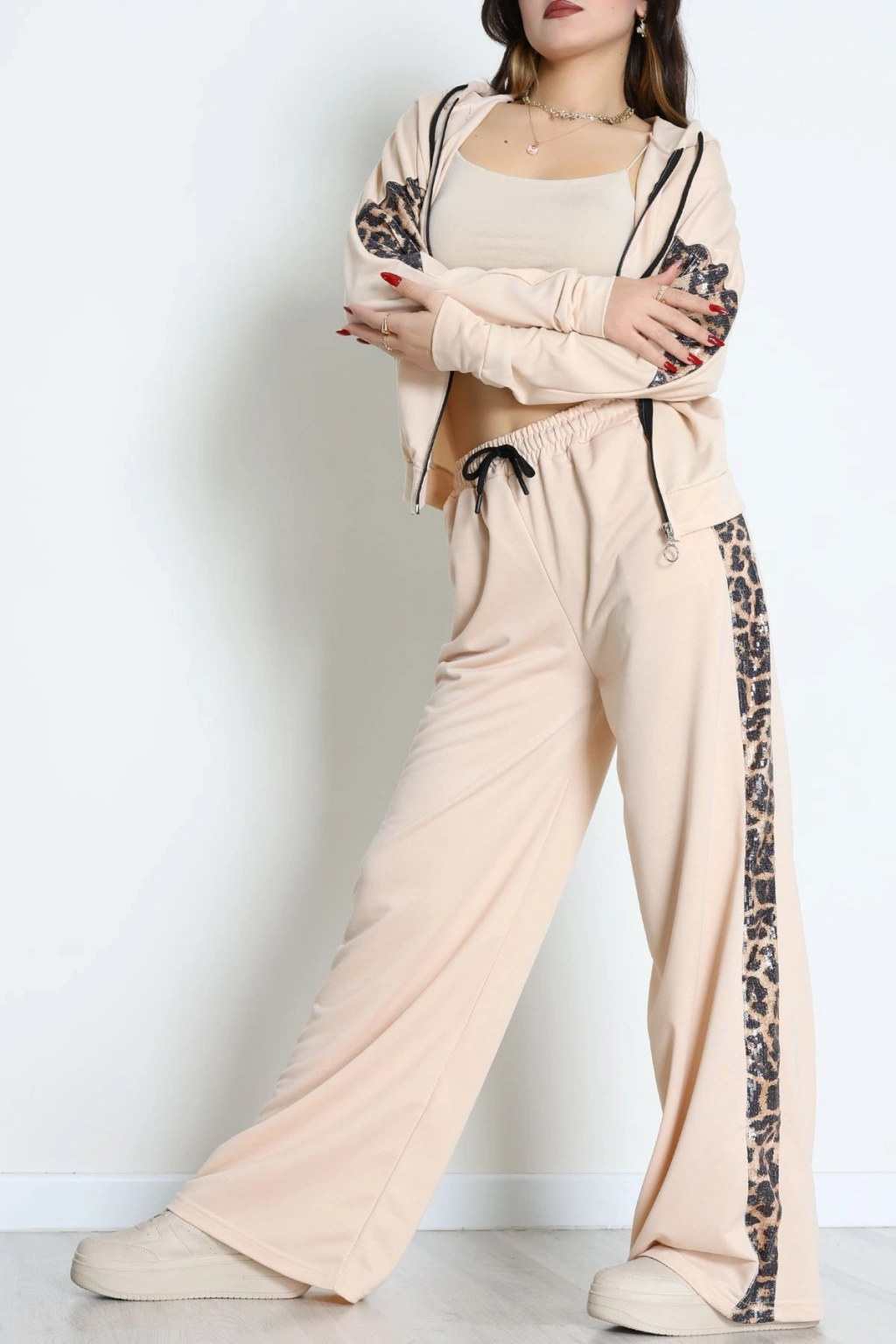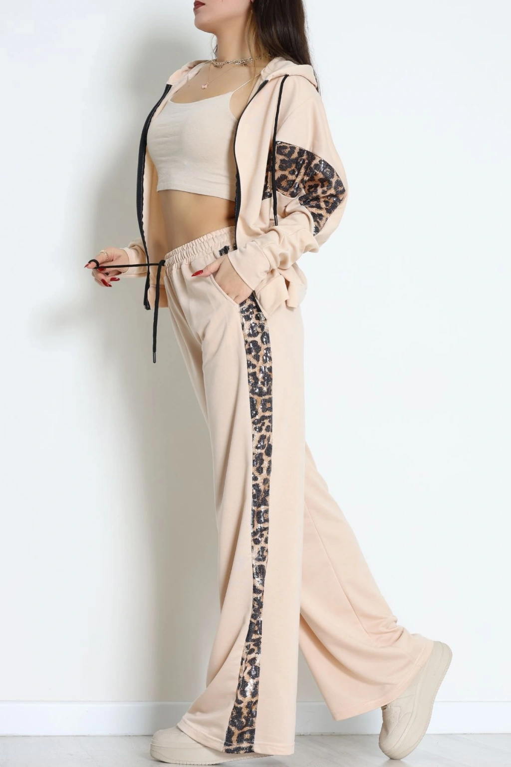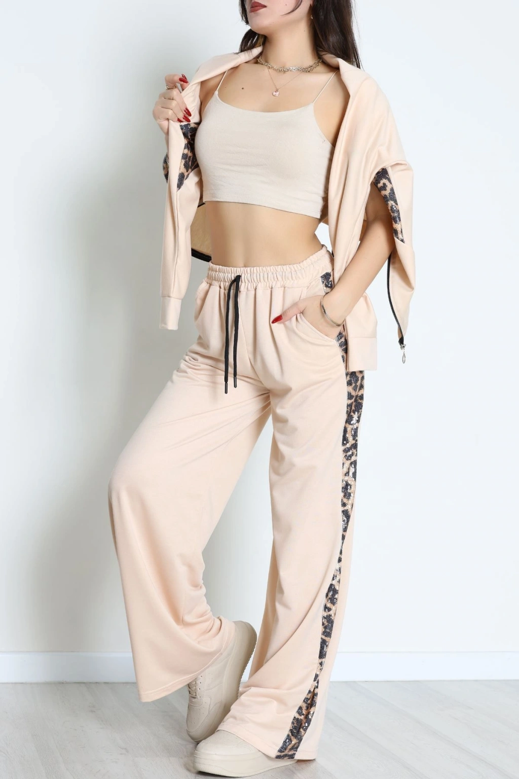 Pul Garnili 2 İplik Eşofman Takımı Bej - 50799.1857.