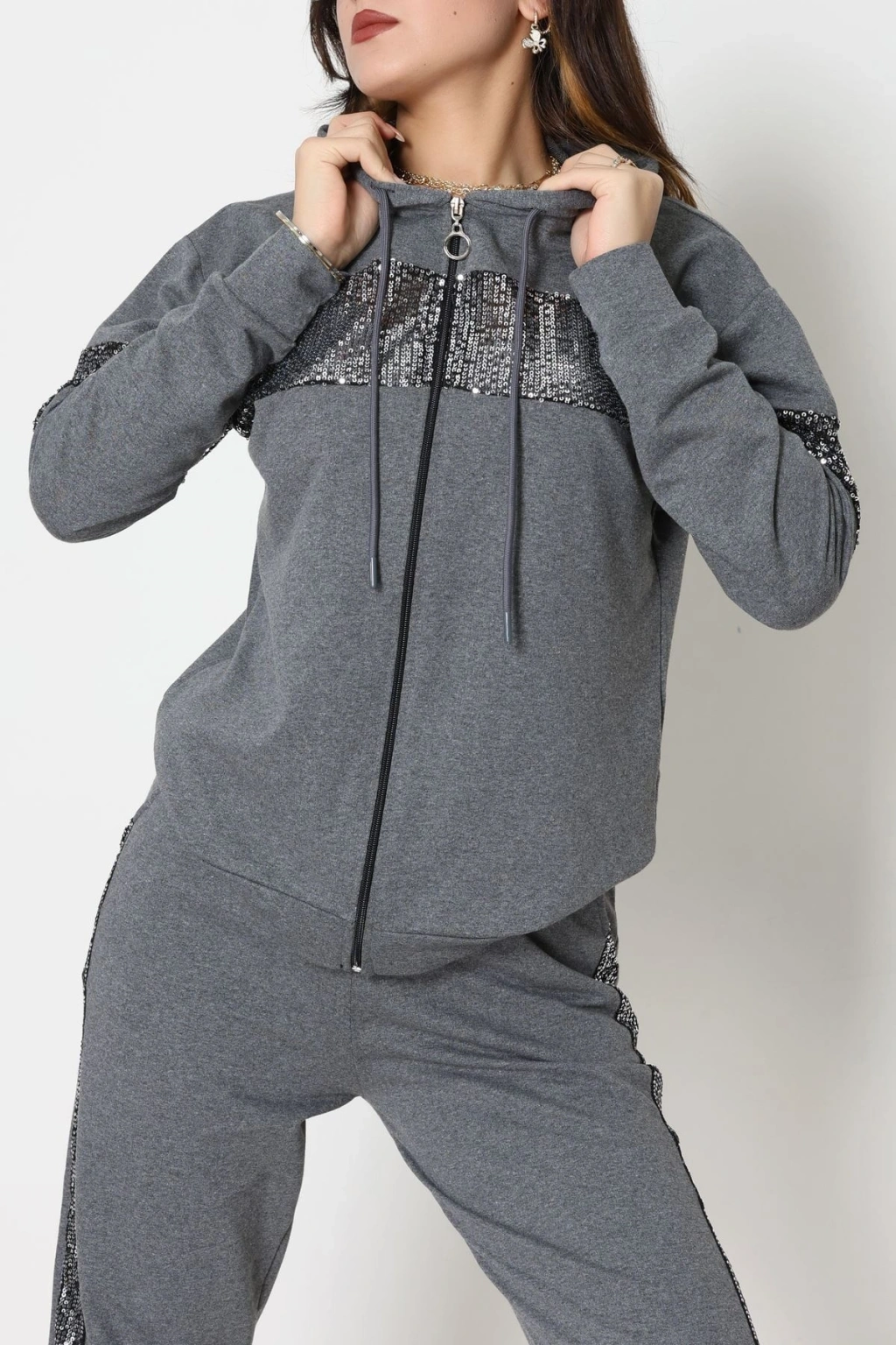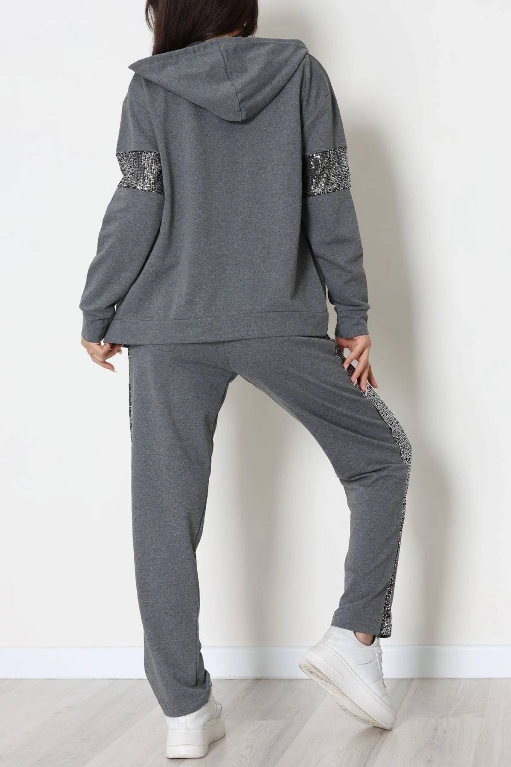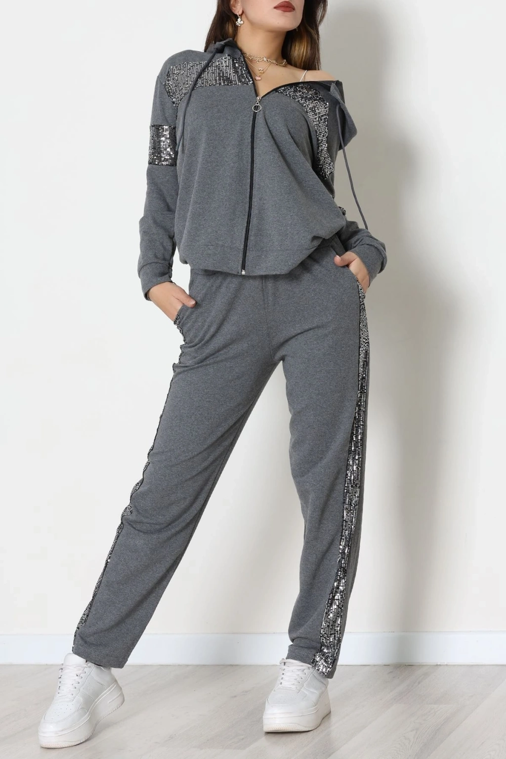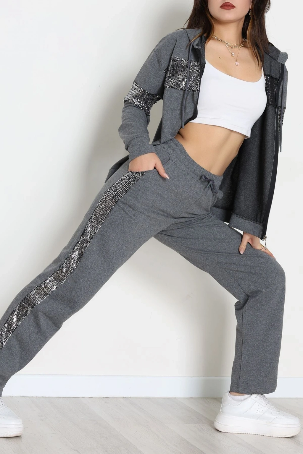 Pul Garnili 2 İplik Eşofman Takımı Füme - 50800.1857.