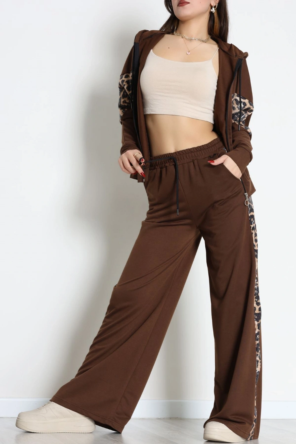 Pul Garnili 2 İplik Eşofman Takımı Kahve - 50799.1857.