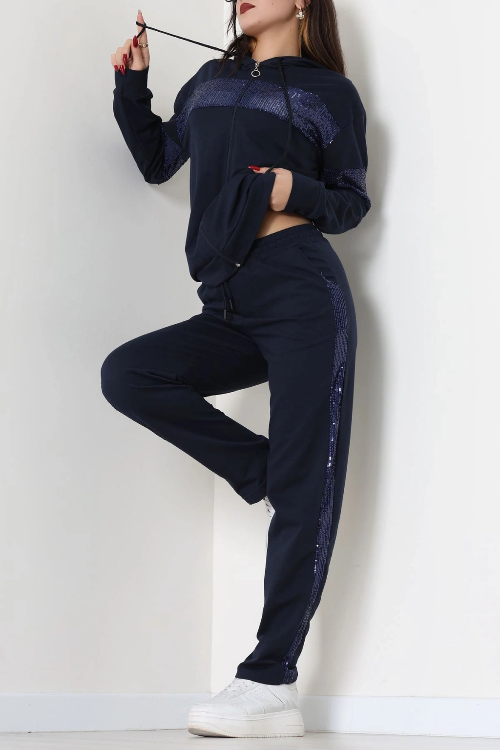 Pul Garnili 2 İplik Eşofman Takımı Lacivert - 50800.1857.