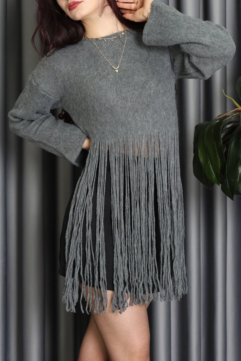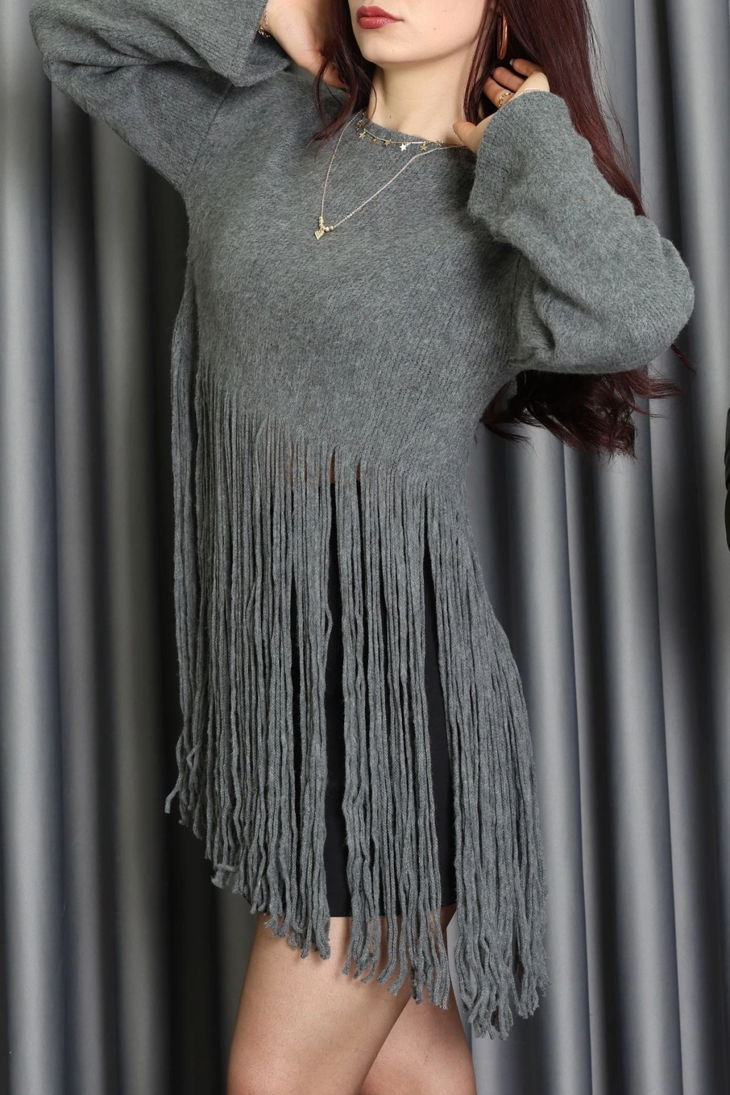 Püsküllü Triko Kazak Füme - 70898.1724.