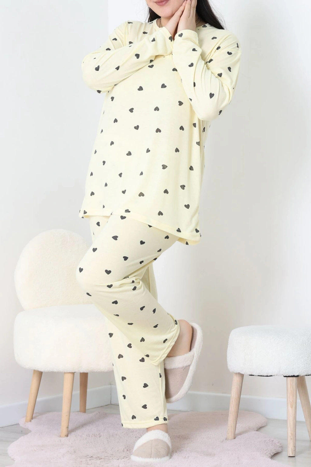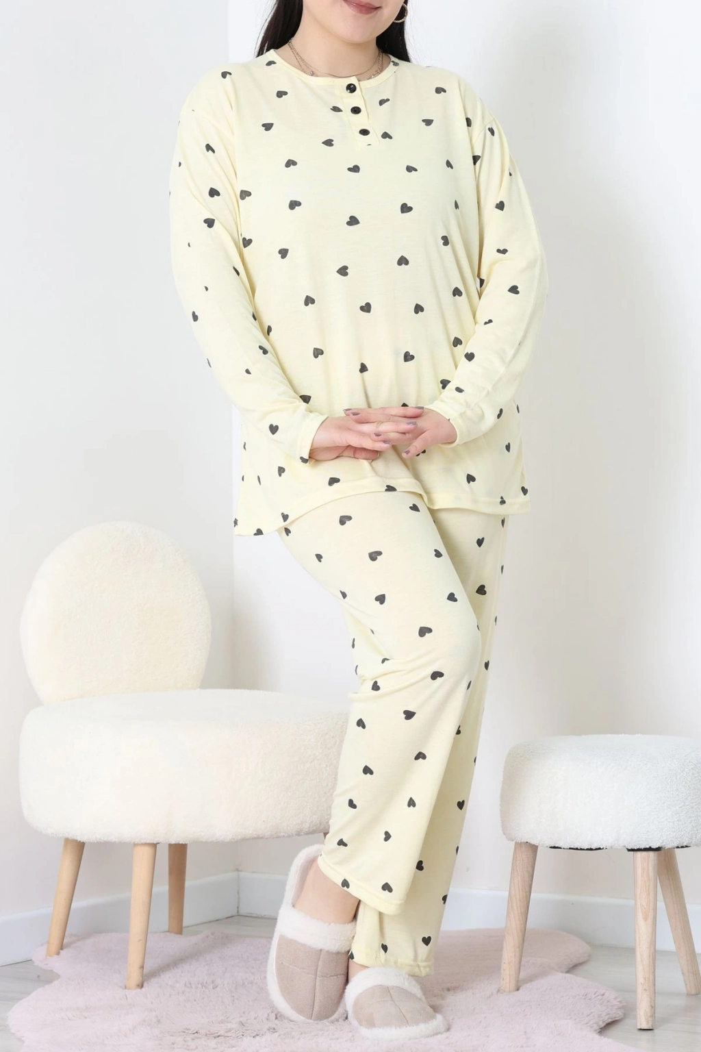 Ring Viskon Büyük Beden Pijama Takımı Sarı - 52202.1961.