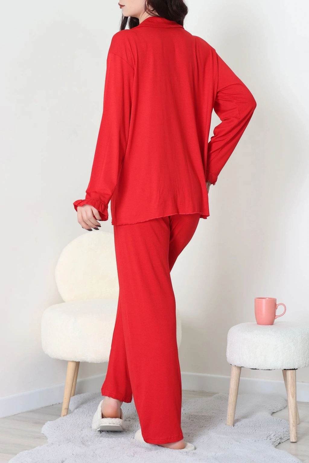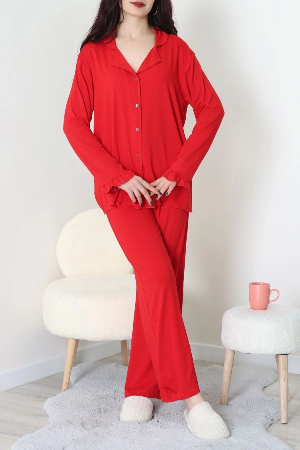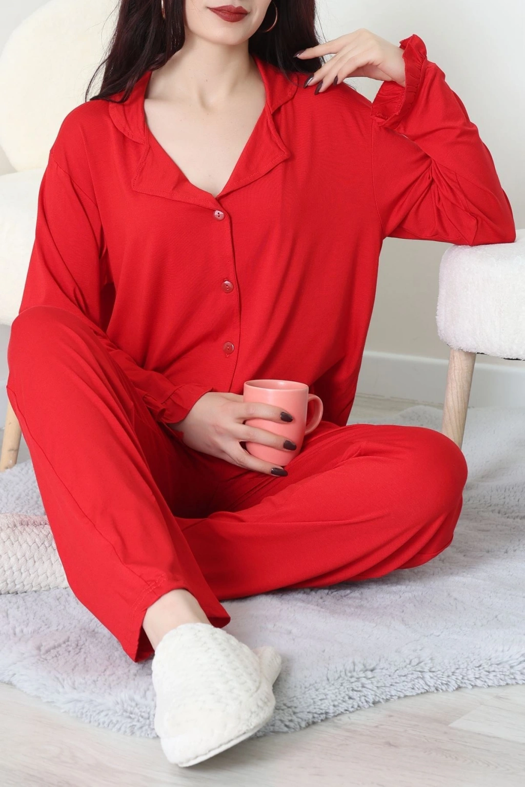 Ring Viskon Düğmeli Pijama Takımı Kırmızı - 52201.1961.