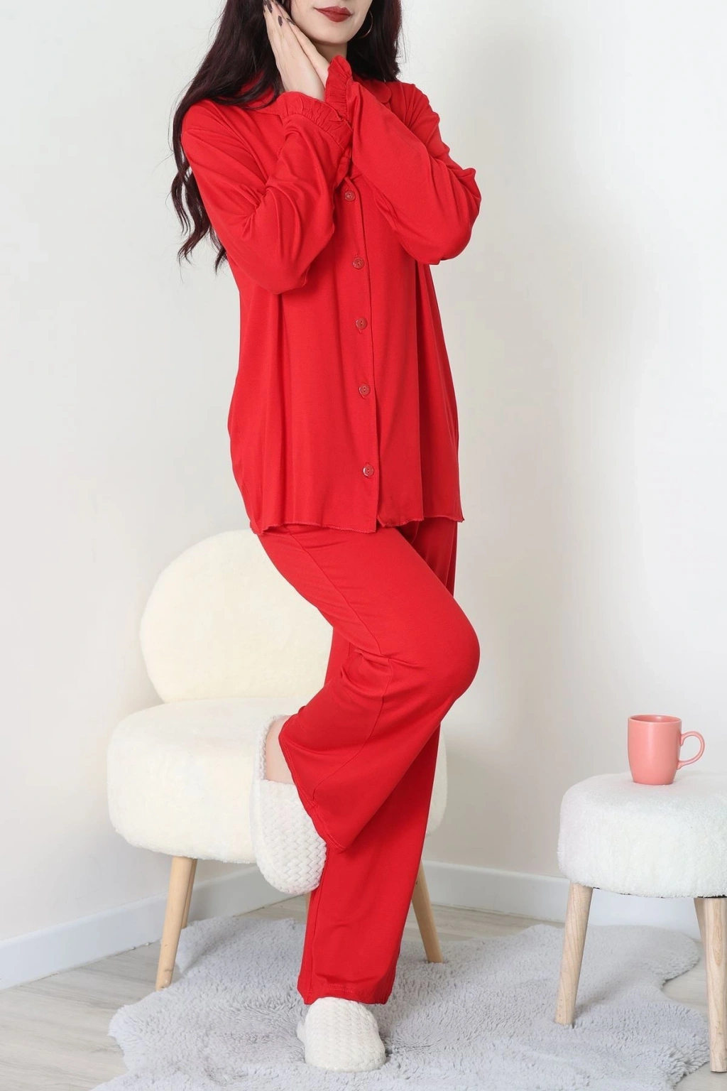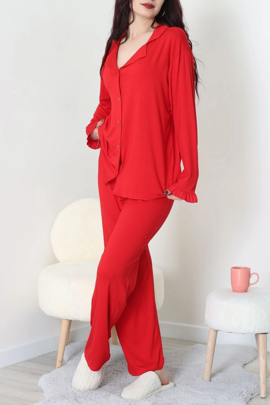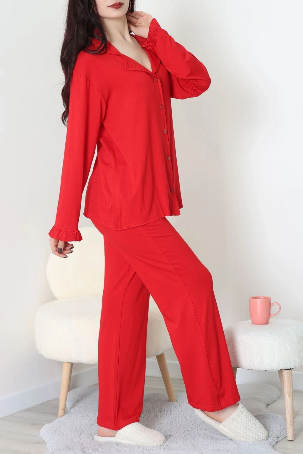 Ring Viskon Düğmeli Pijama Takımı Kırmızı - 52201.1961.