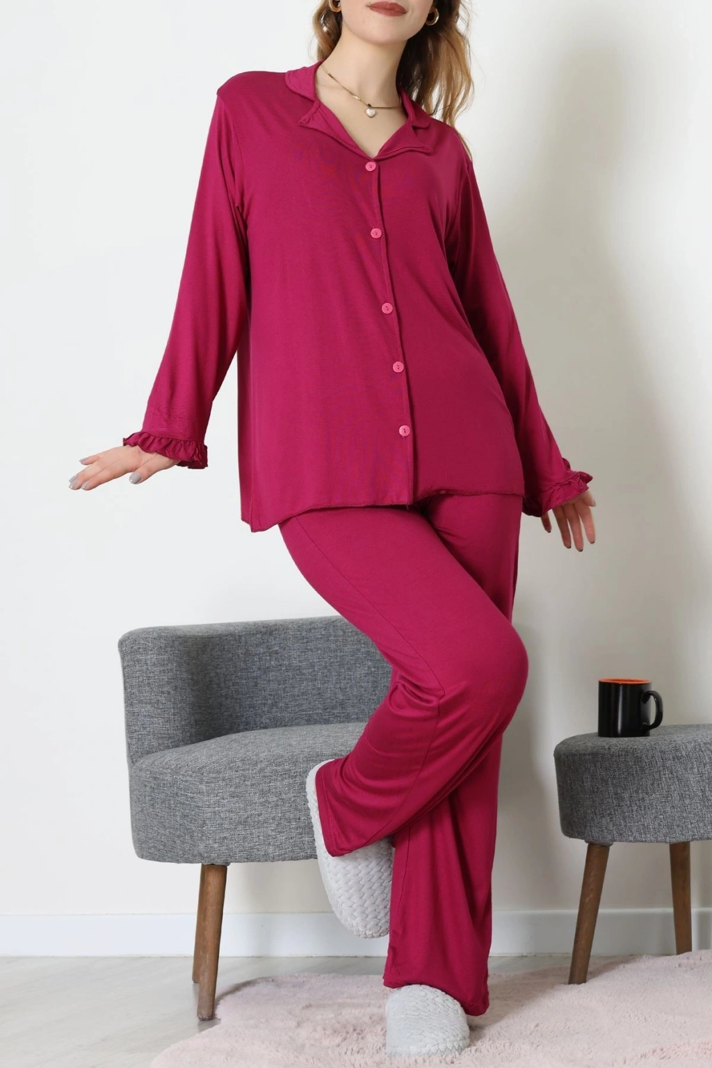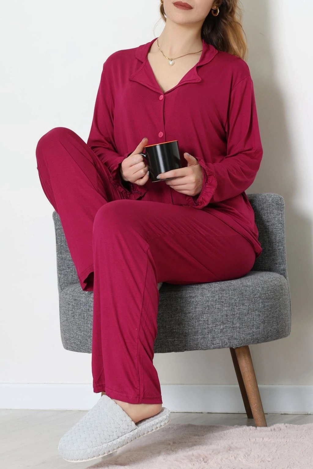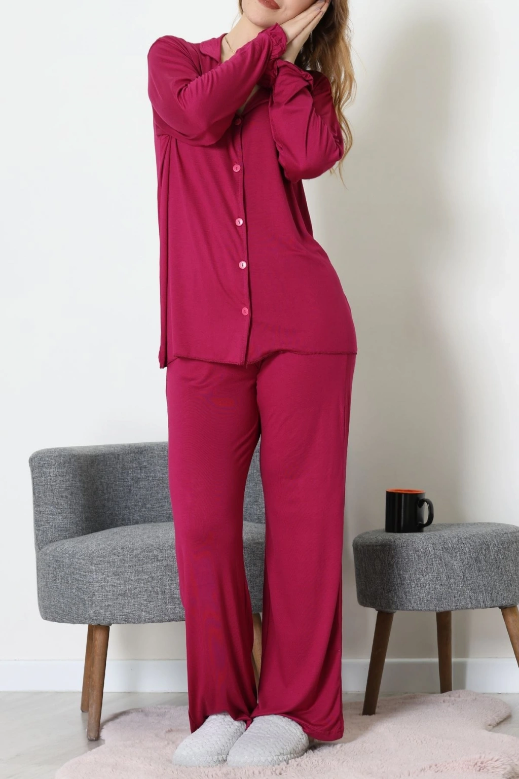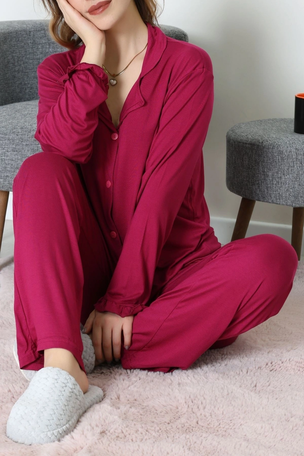 Ring Viskon Düğmeli Pijama Takımı Mor - 52201.1961.