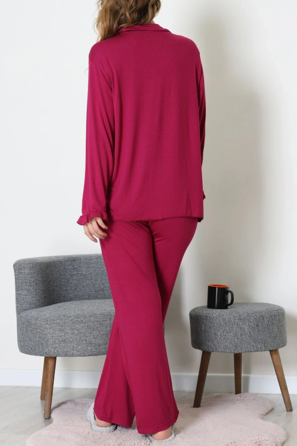 Süet Düğmeli Pijama Takımı Kırmızıekose - 52171.1050.