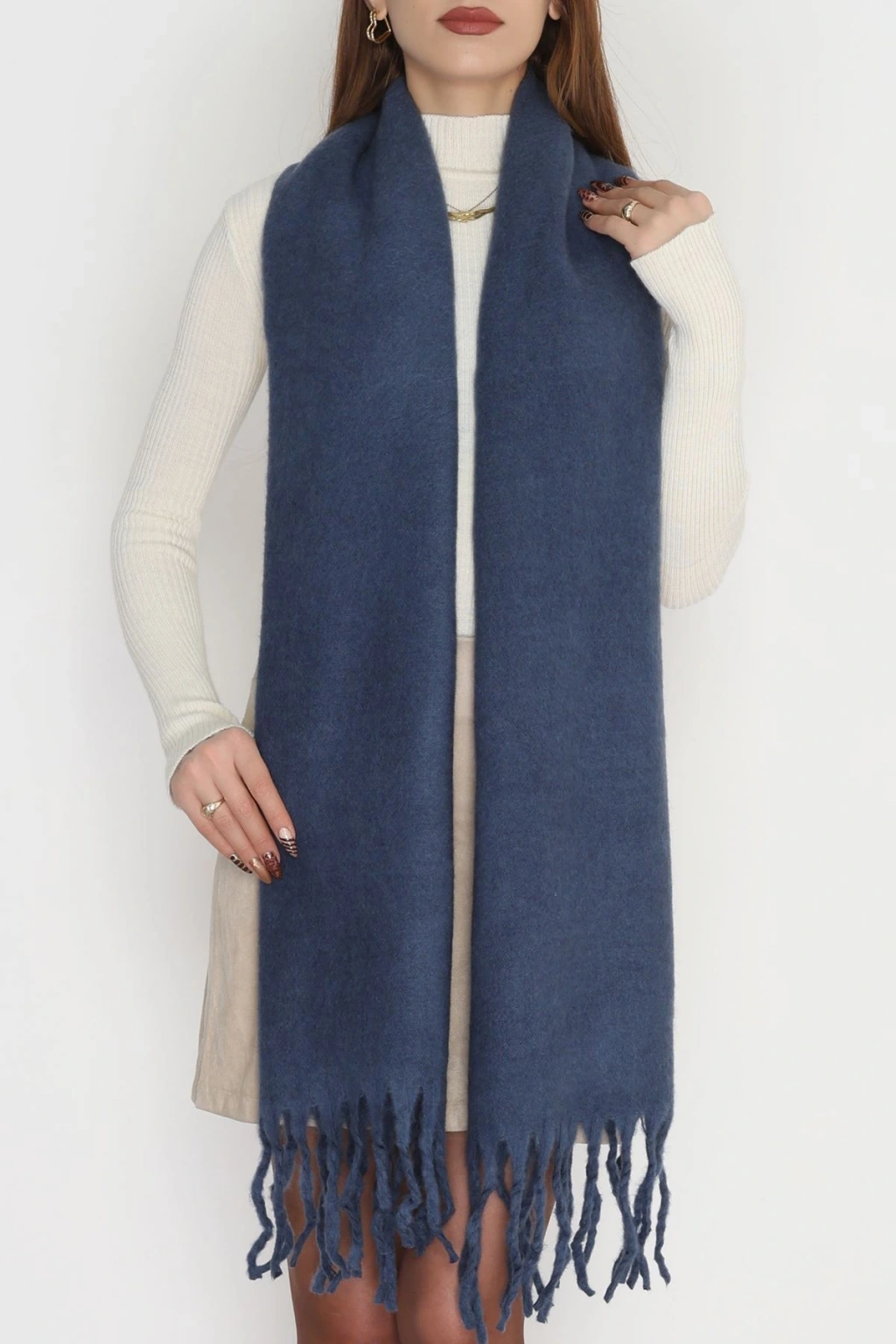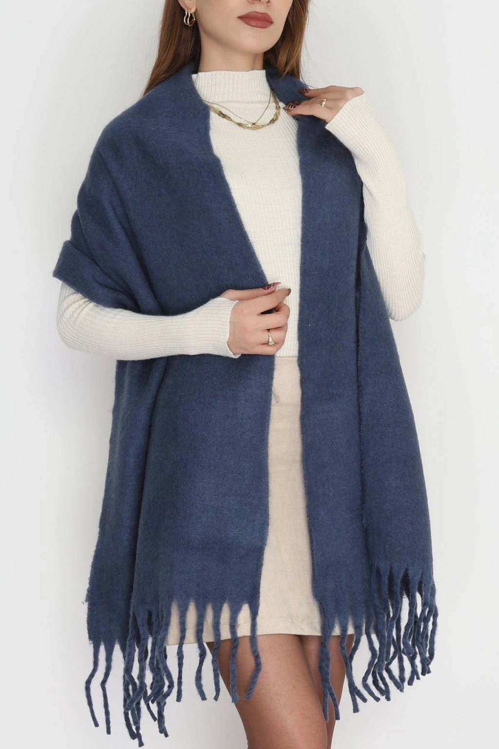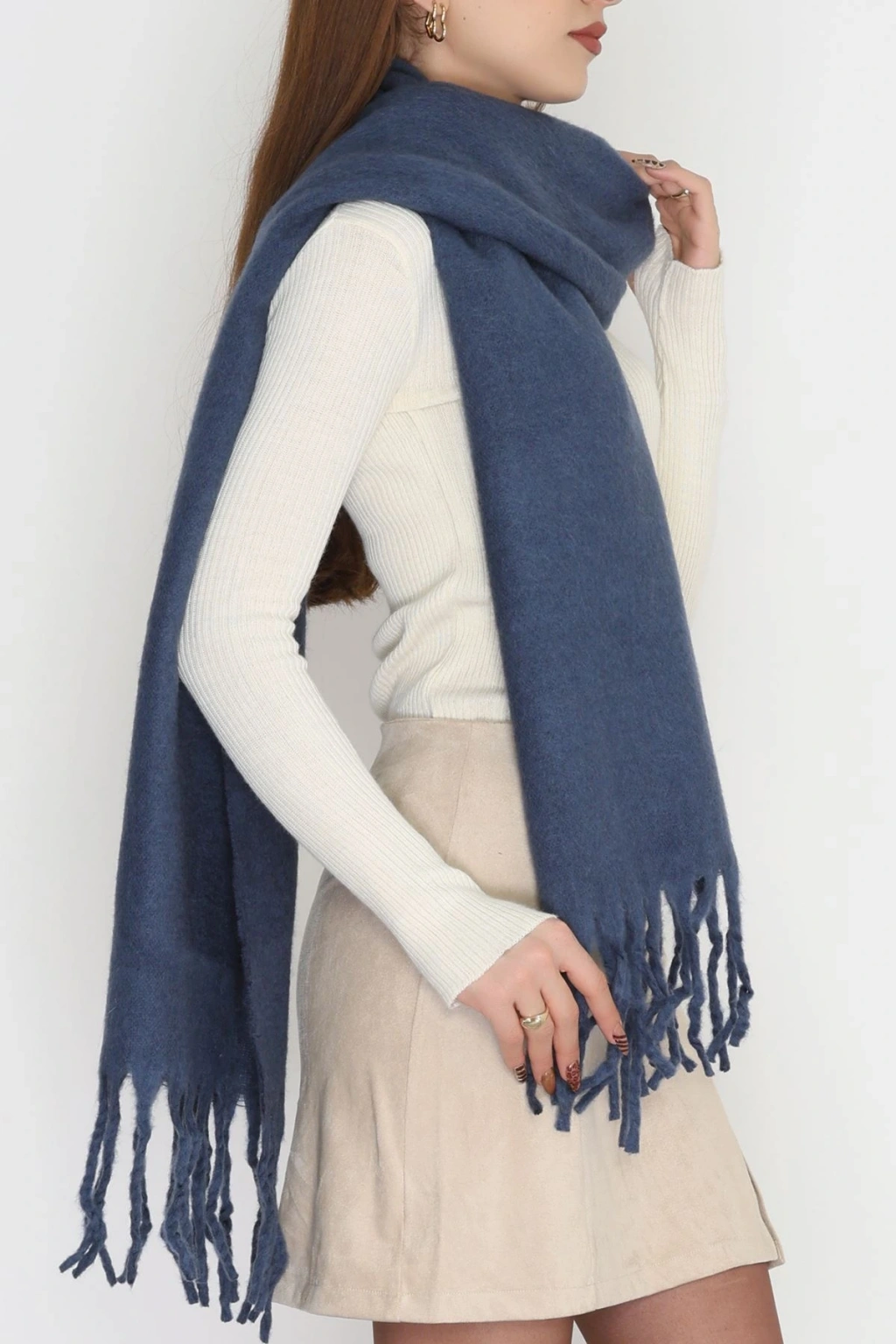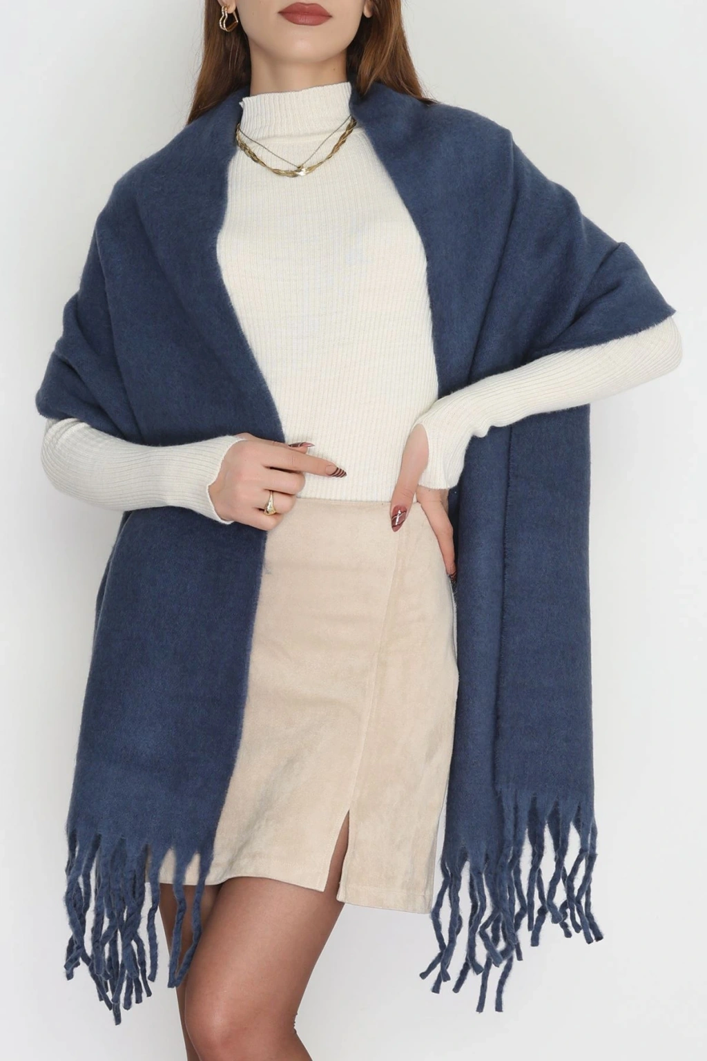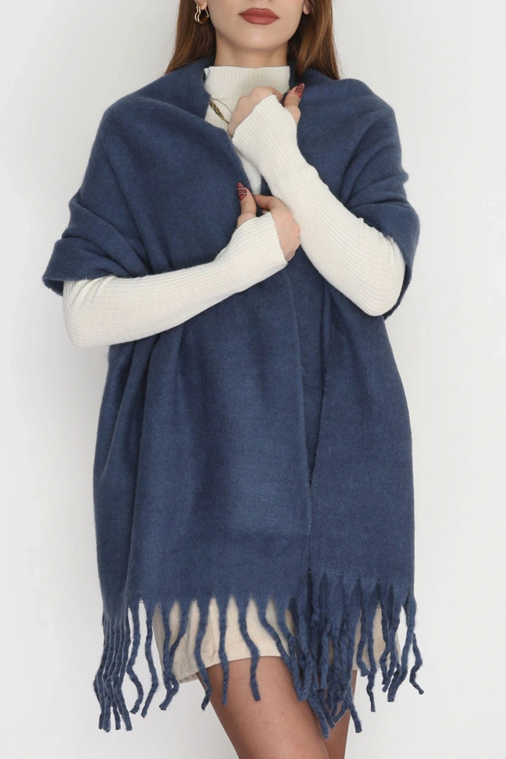 Saçaklı Düz Şal İndigo - 70865.1736.