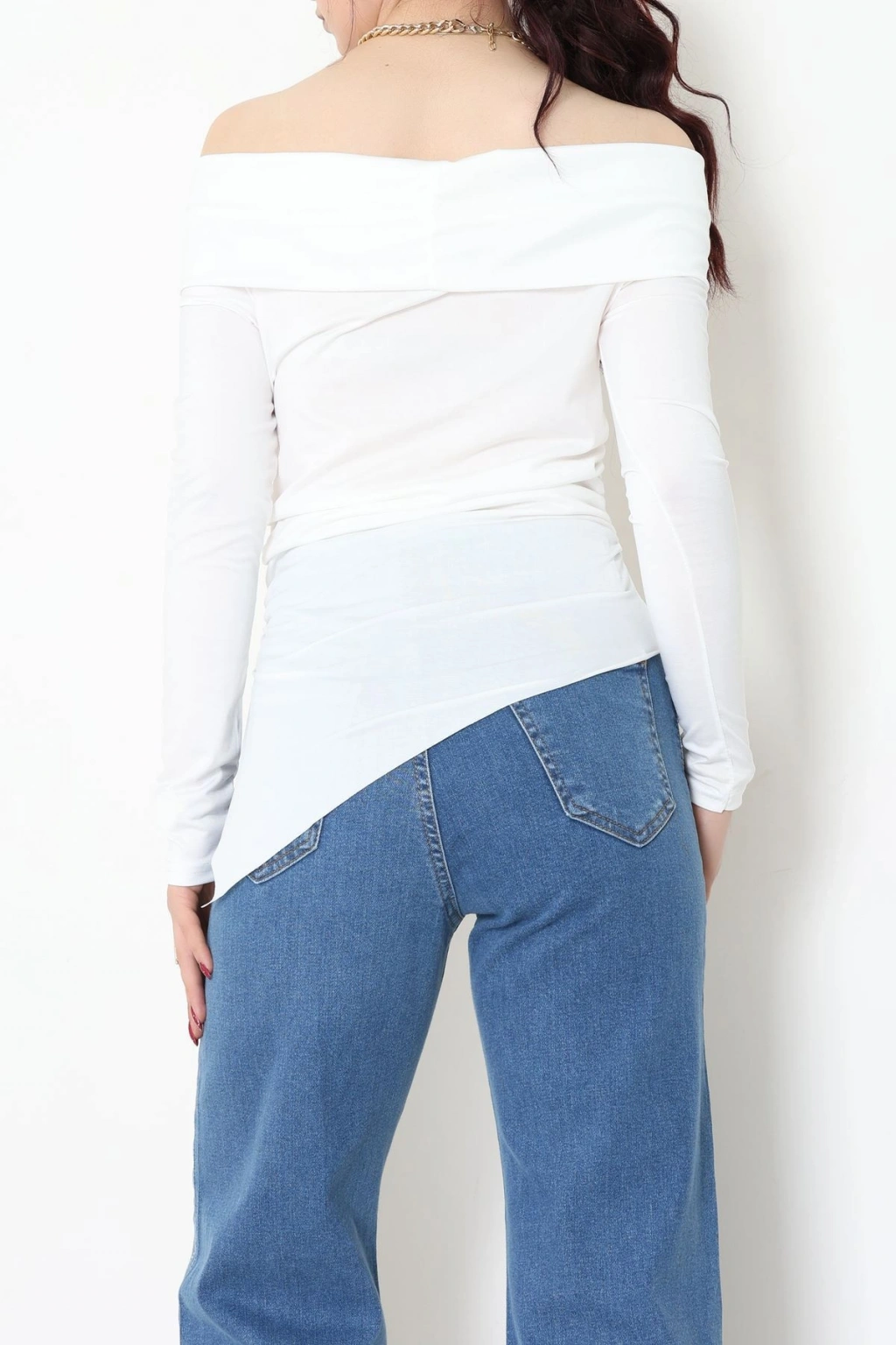Viskon V Yaka Uzun Kollu Body Beyaz - 4000.2127.