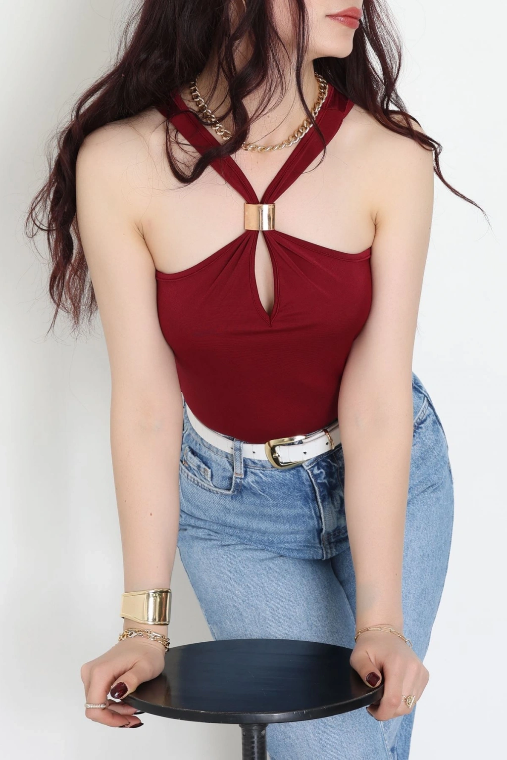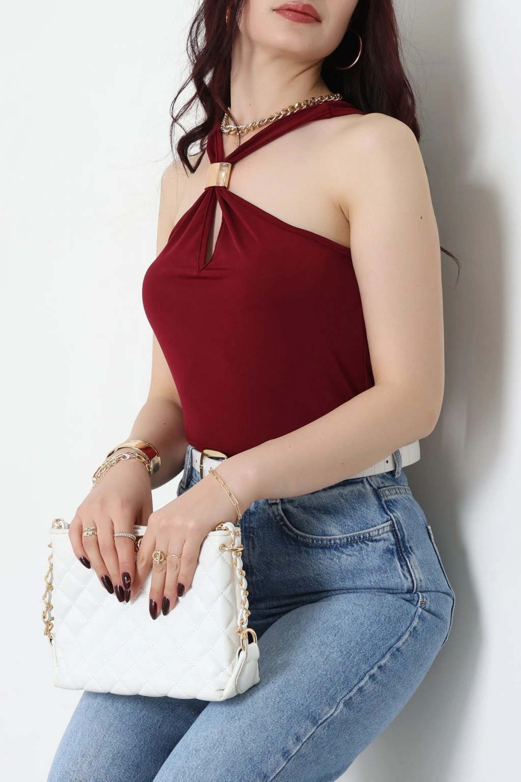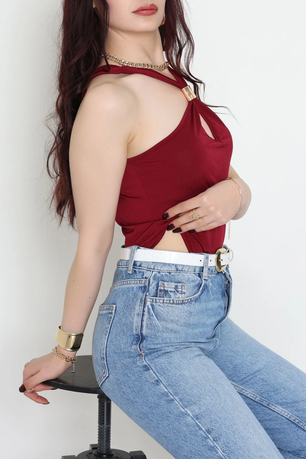 Sandy Önü Tokalı Çıtçıtlı Bluz Bordo - 42803.1949.