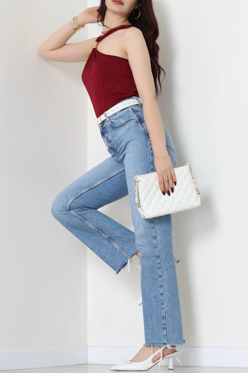 Biyeli Kalın Askılı Crop Atlet Bordo - 9032.125.