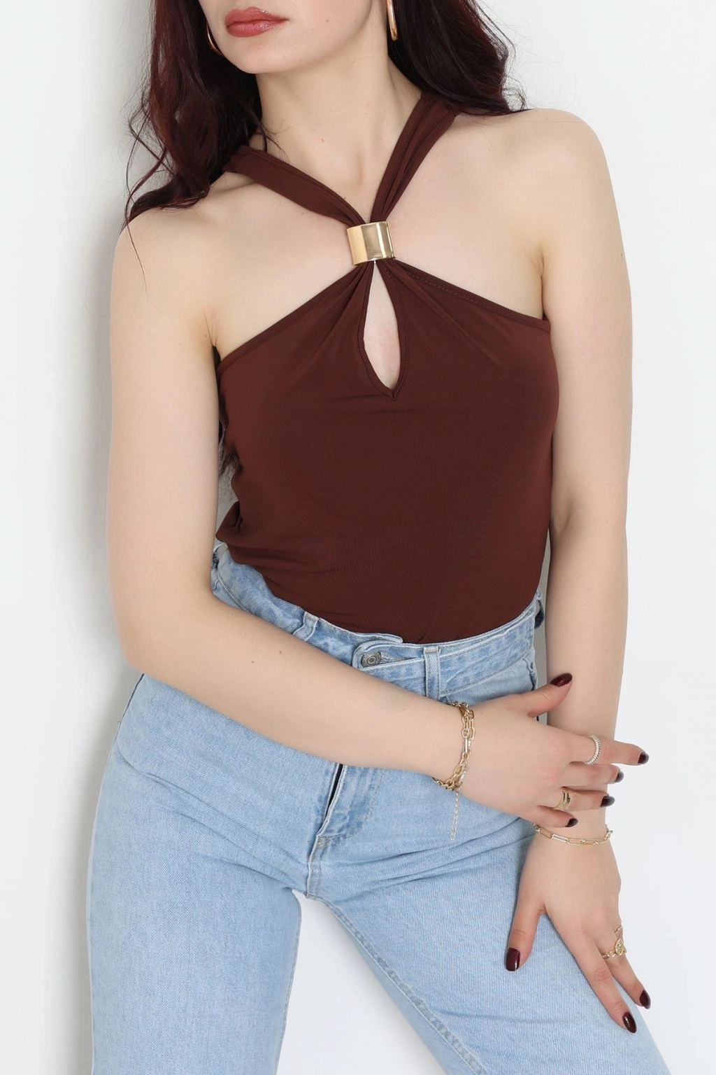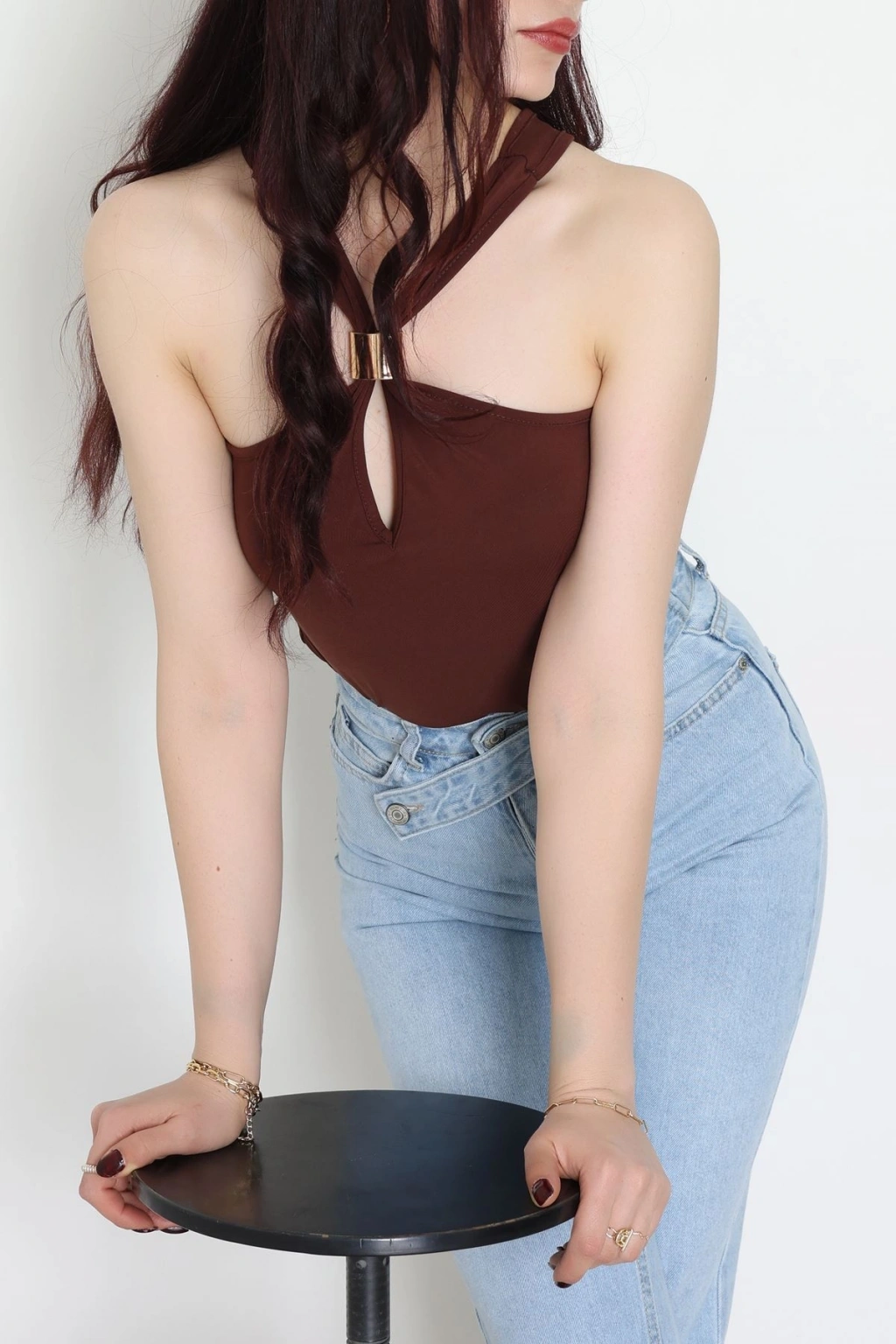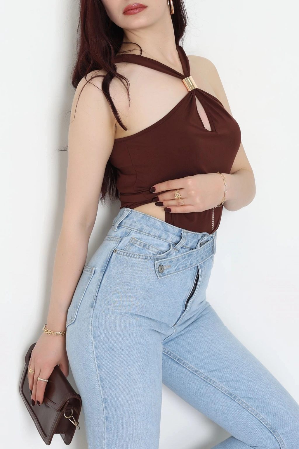 Bisiklet Yaka Omuz Düğmeli Kaşkorse Body Acıkahve - 70790.599.