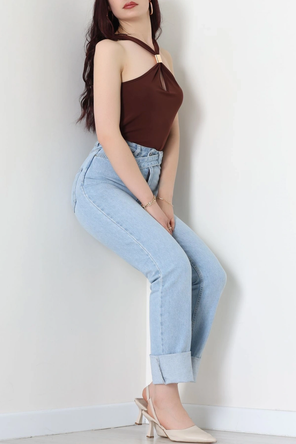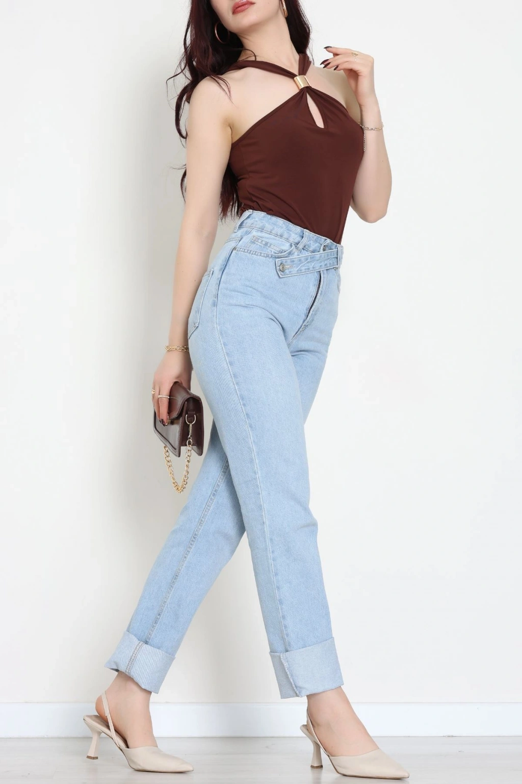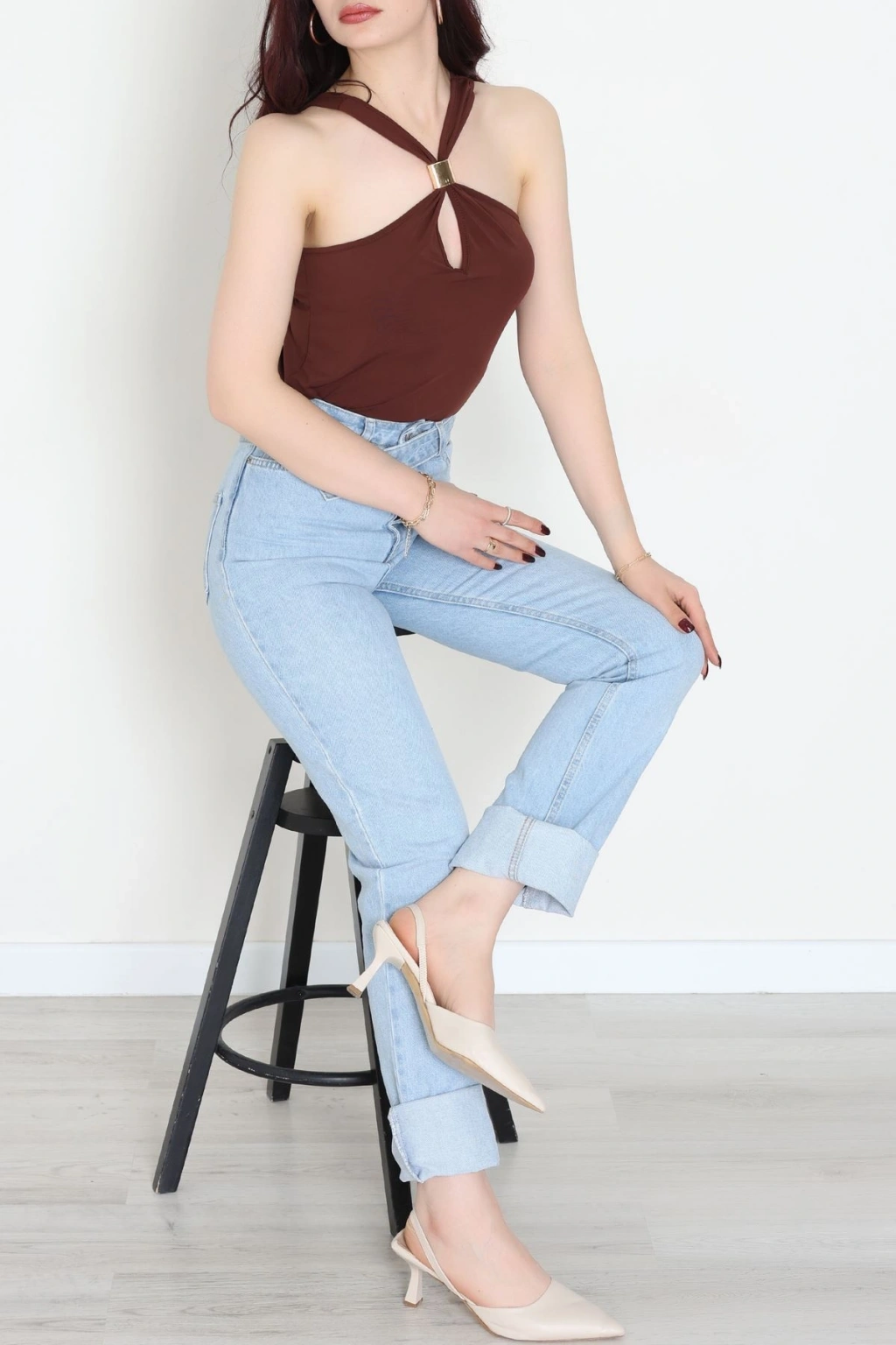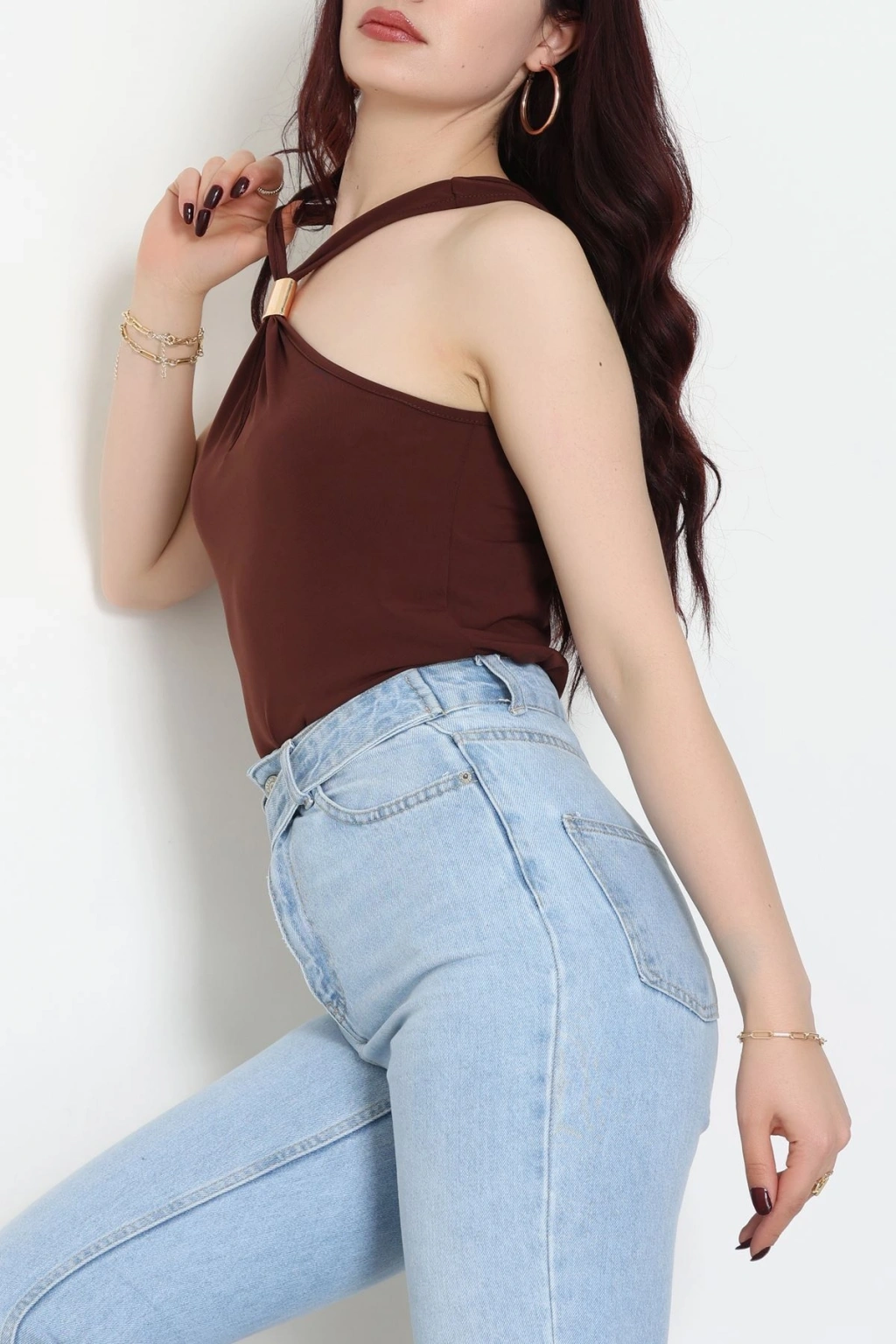 Bisiklet Yaka Omuz Düğmeli Kaşkorse Body Acıkahve - 70790.599.
