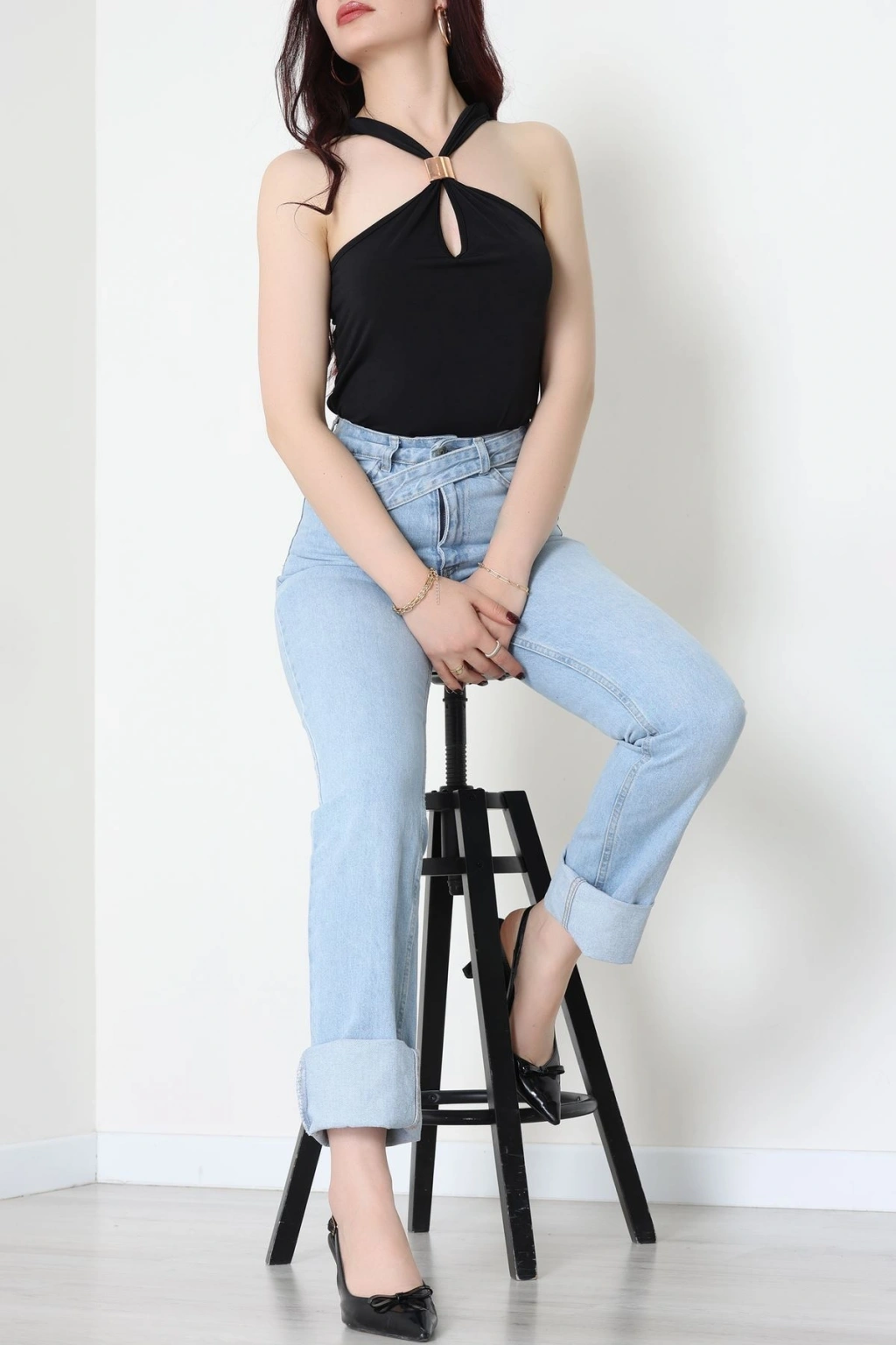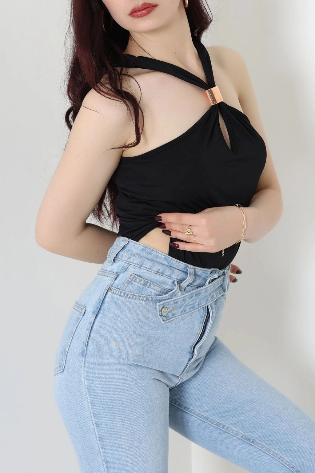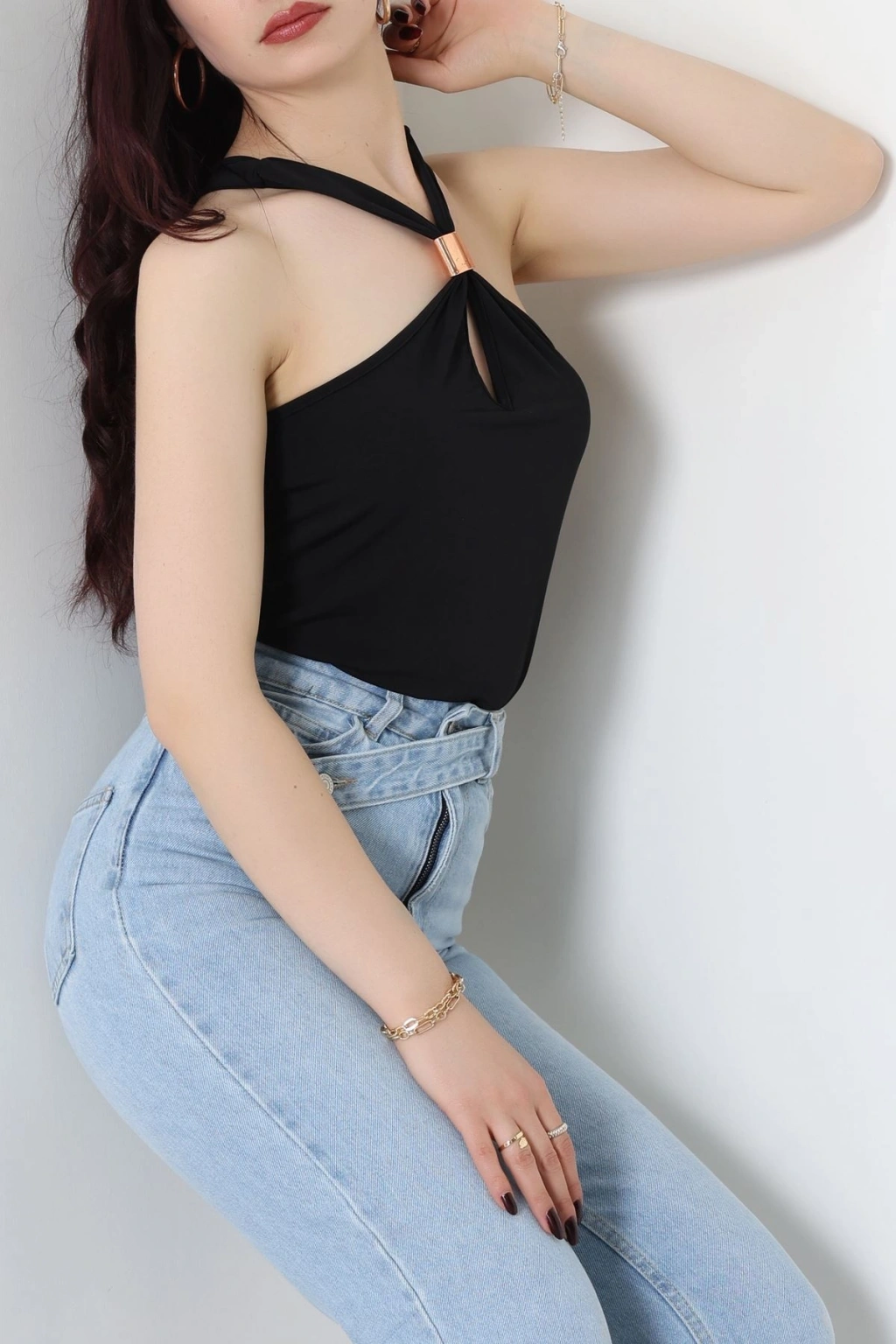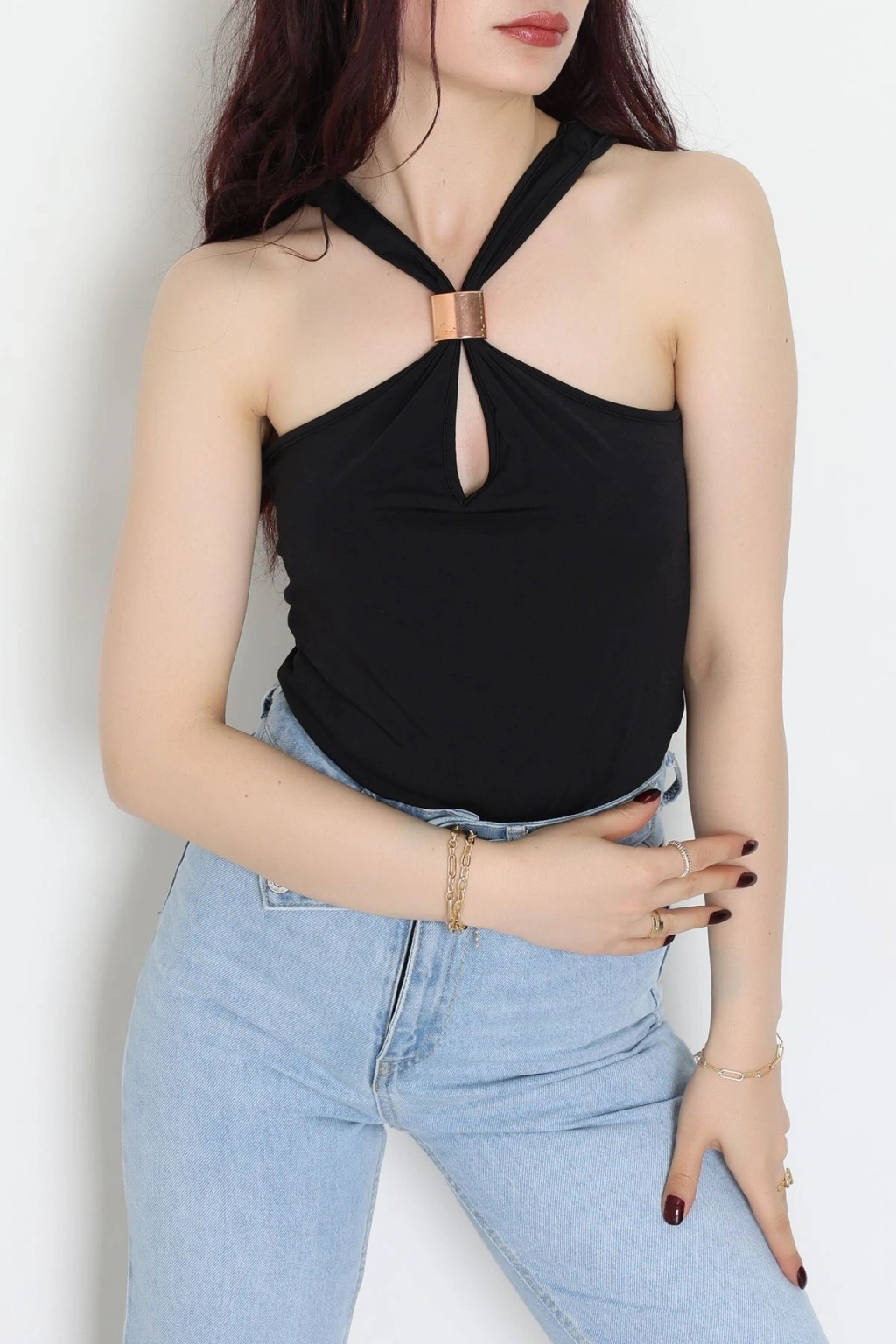 Sandy Önü Tokalı Çıtçıtlı Bluz Siyah - 42803.1949.