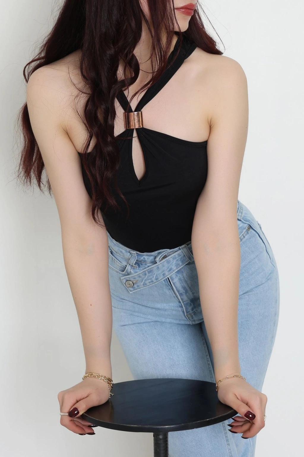 Kapşonlu Parmak Geçmeli Body Siyah - 70769.1567.