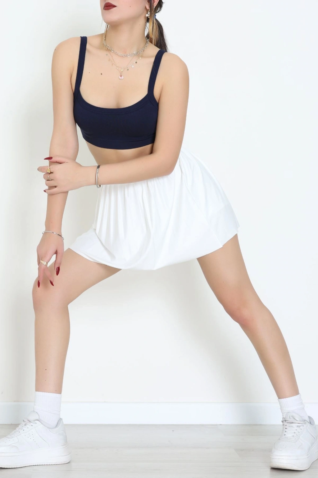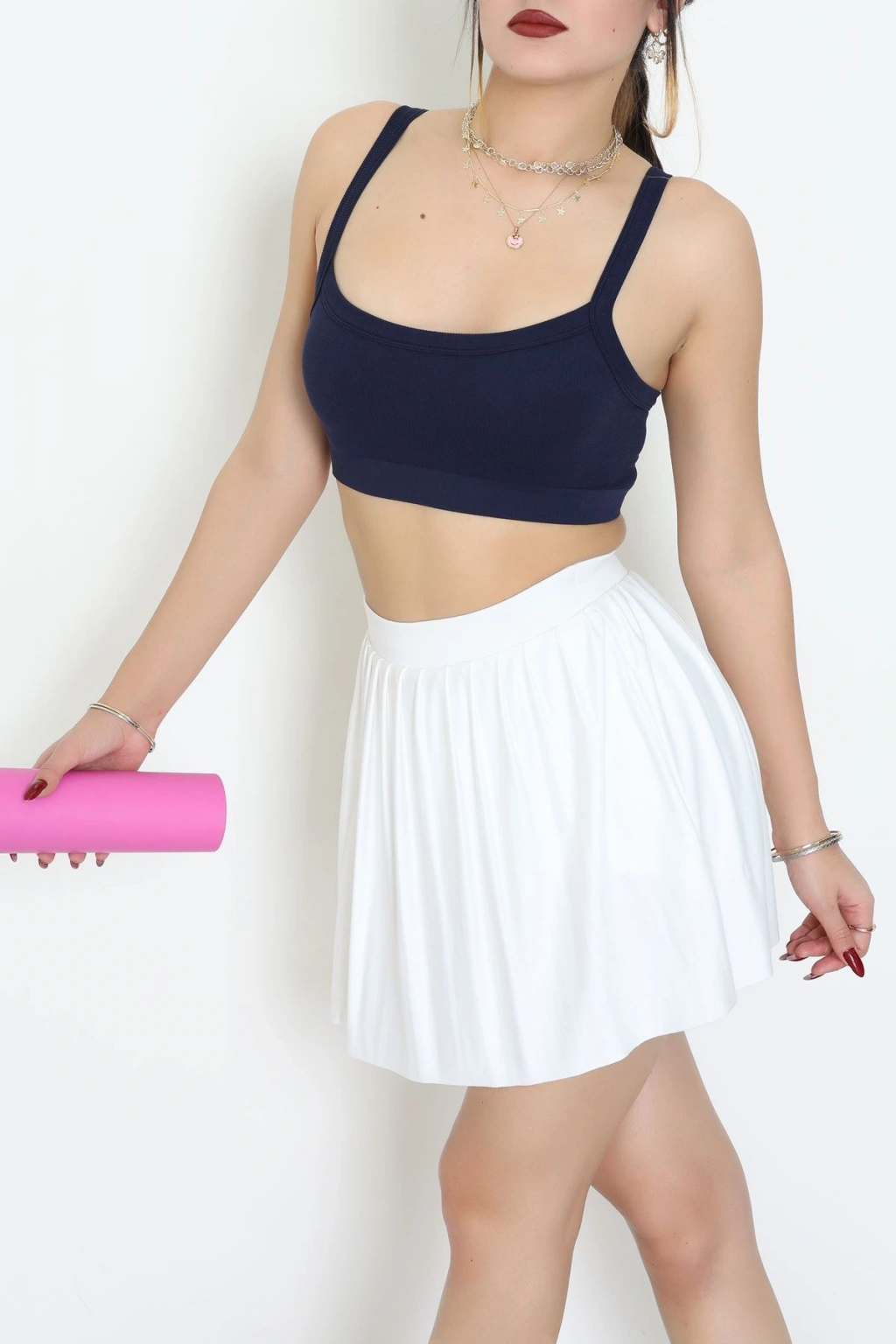 Biyeli Kalın Askılı Crop Atlet Beyaz - 9032.125.