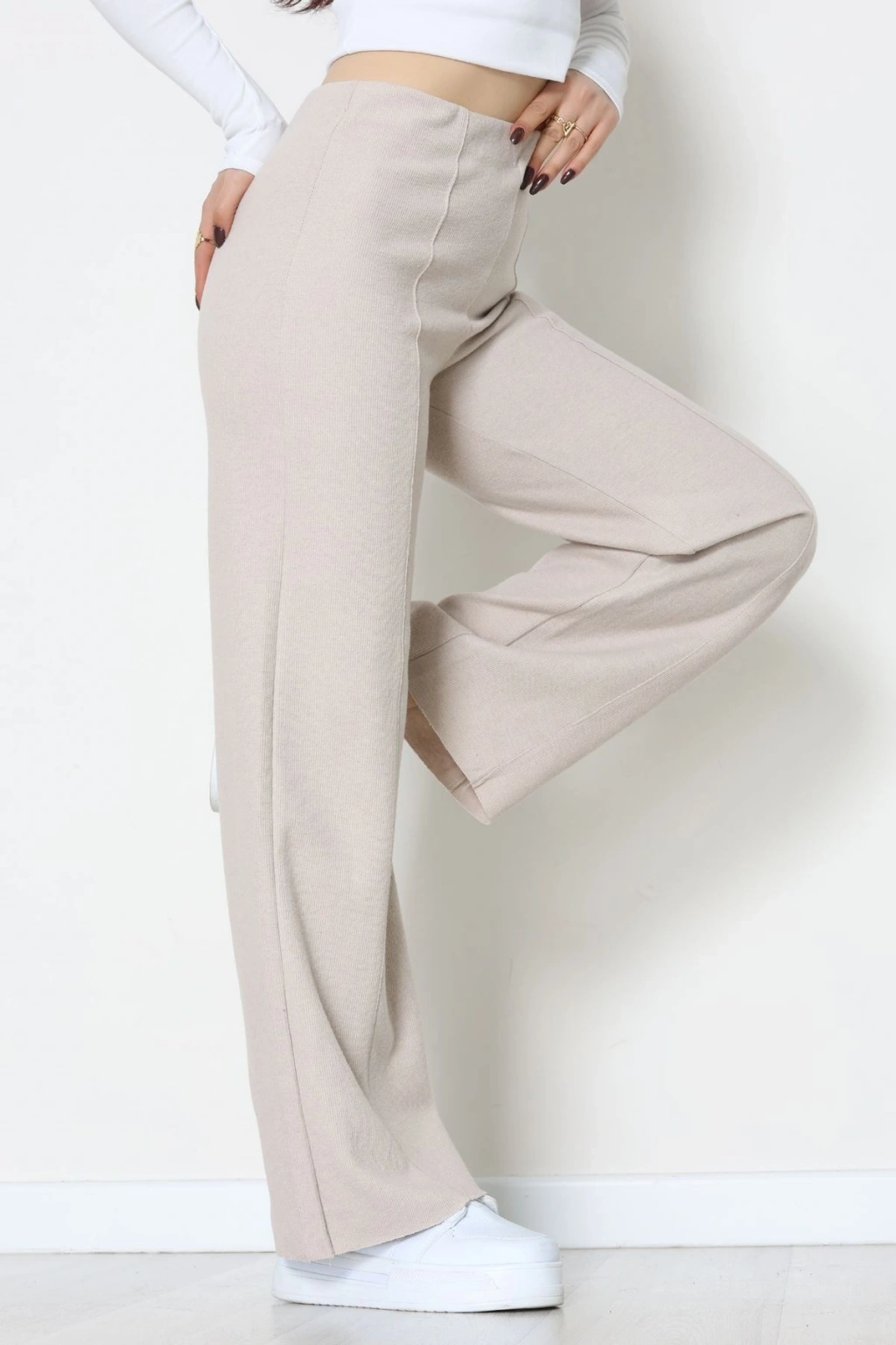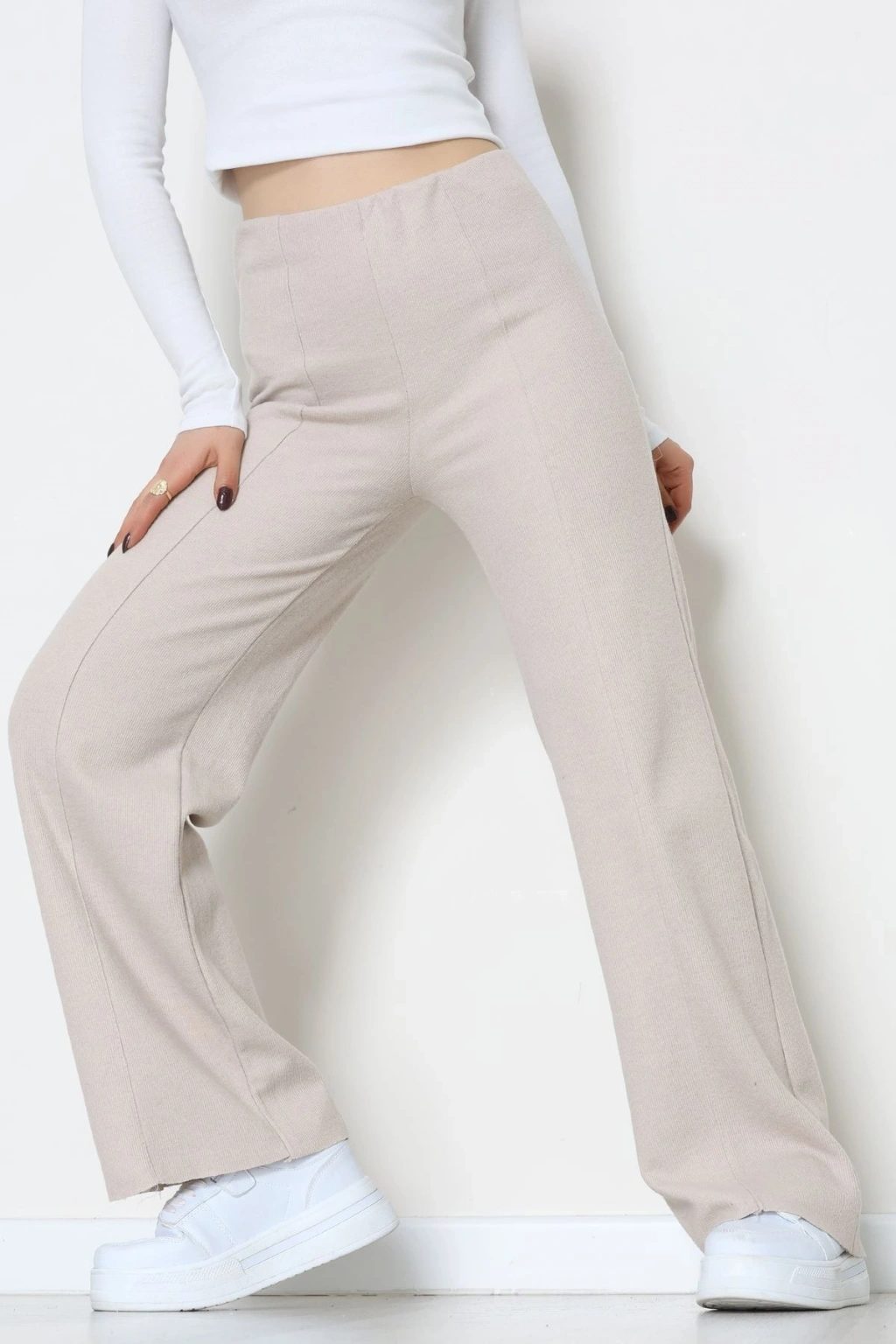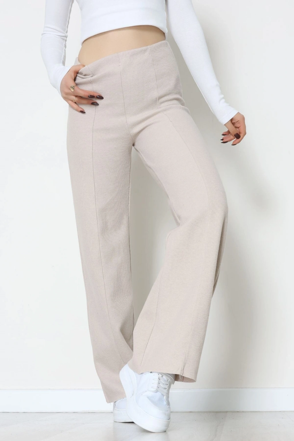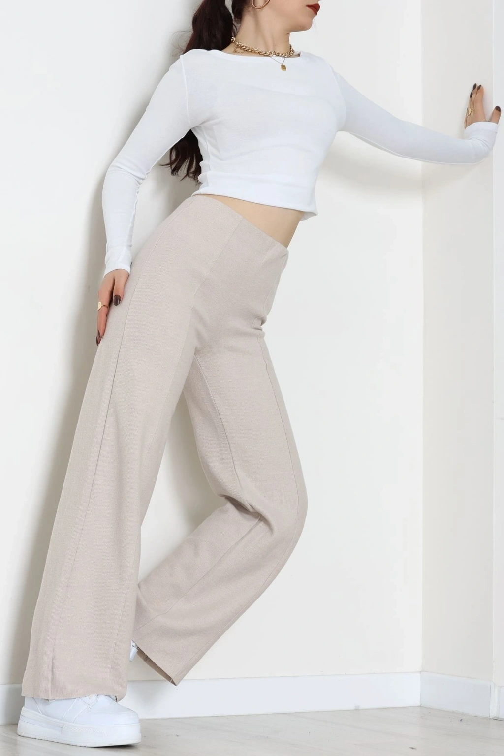 Selanik Kumaş Bel Lastikli Çımalı Pantolon Bej - 51226.1567.