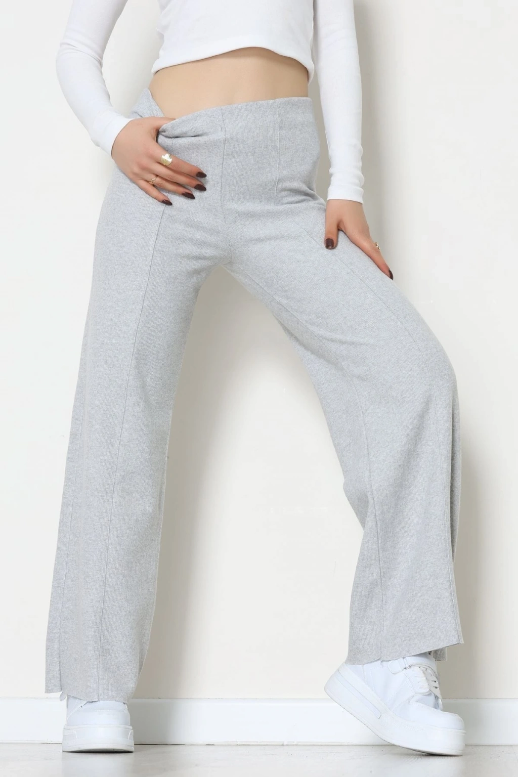 Beli Garnili Poliviskon Palazzo Pantolon Açıkgri - 51235.1920.