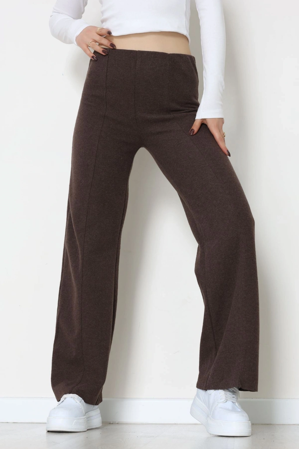 Selanik Kumaş Bel Lastikli Çımalı Pantolon Kahve - 51226.1567.