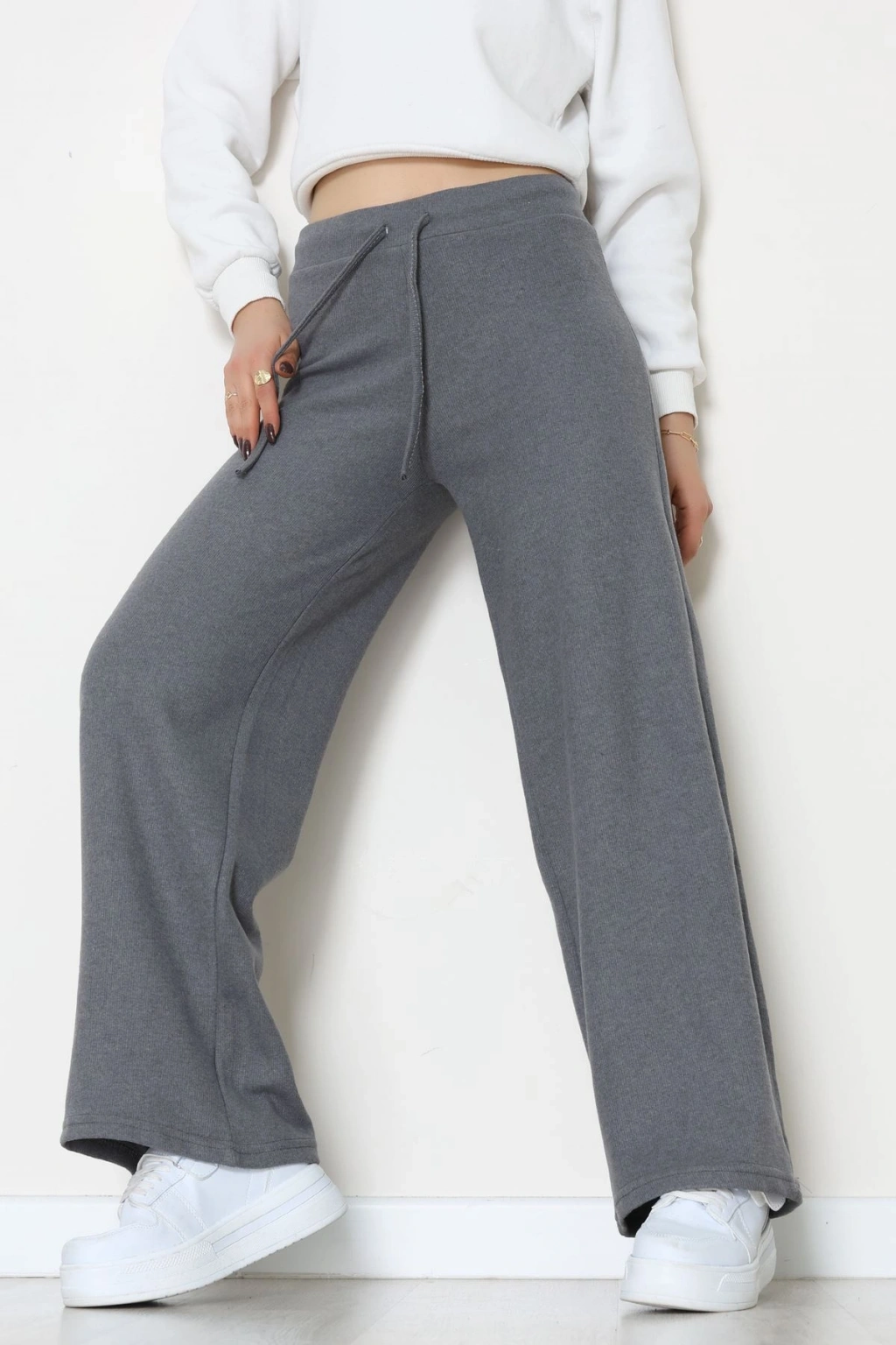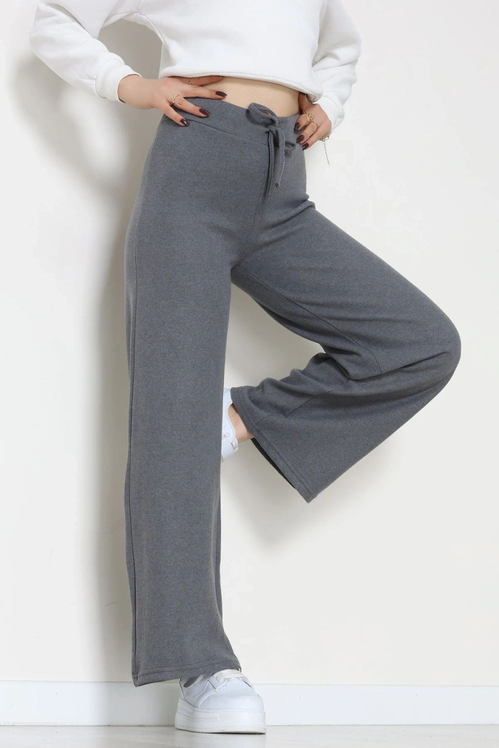 Dabıl Kumaş Beli Bağcıklı Pantolon Antrasit - 51615.683.