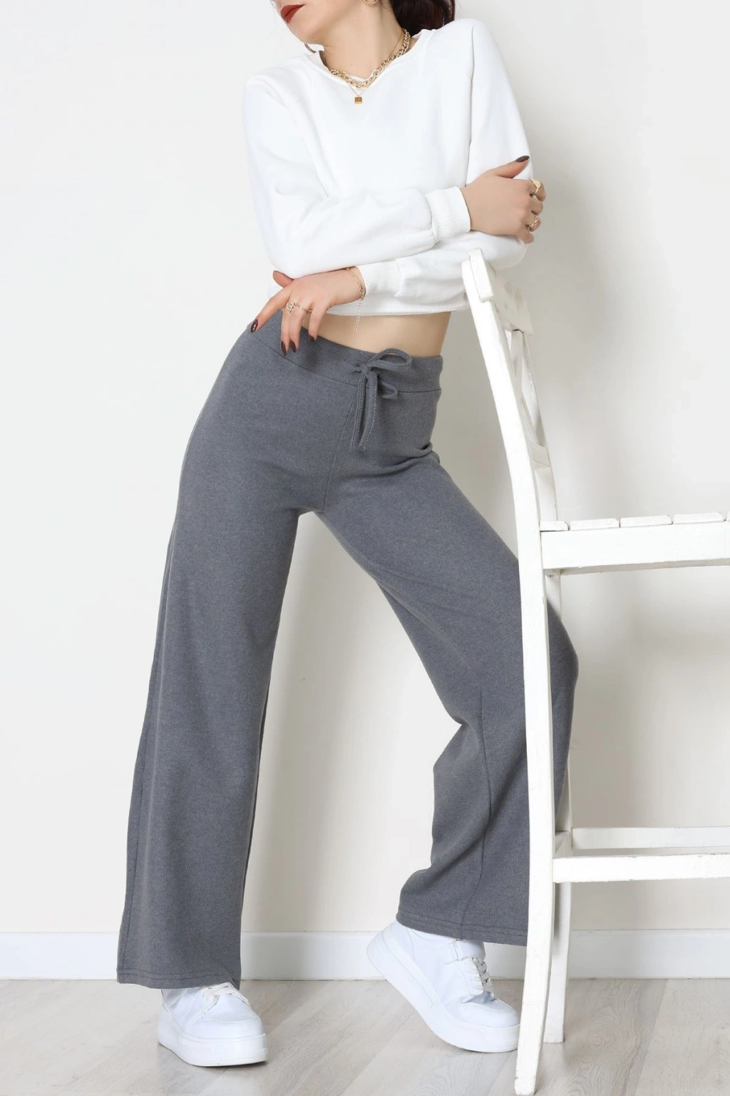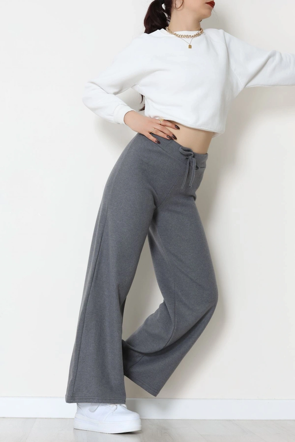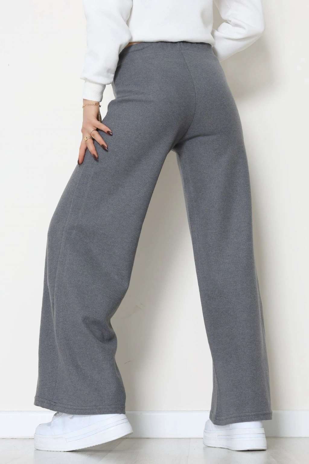 Selanik Kumaş Bel Lastikli Palazzo Pantolon Antrasit - 51228.1567.