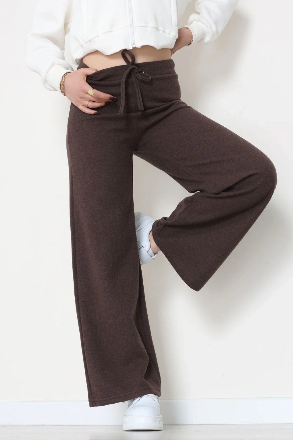 Selanik Kumaş Bel Lastikli Palazzo Pantolon Kahve - 51228.1567.