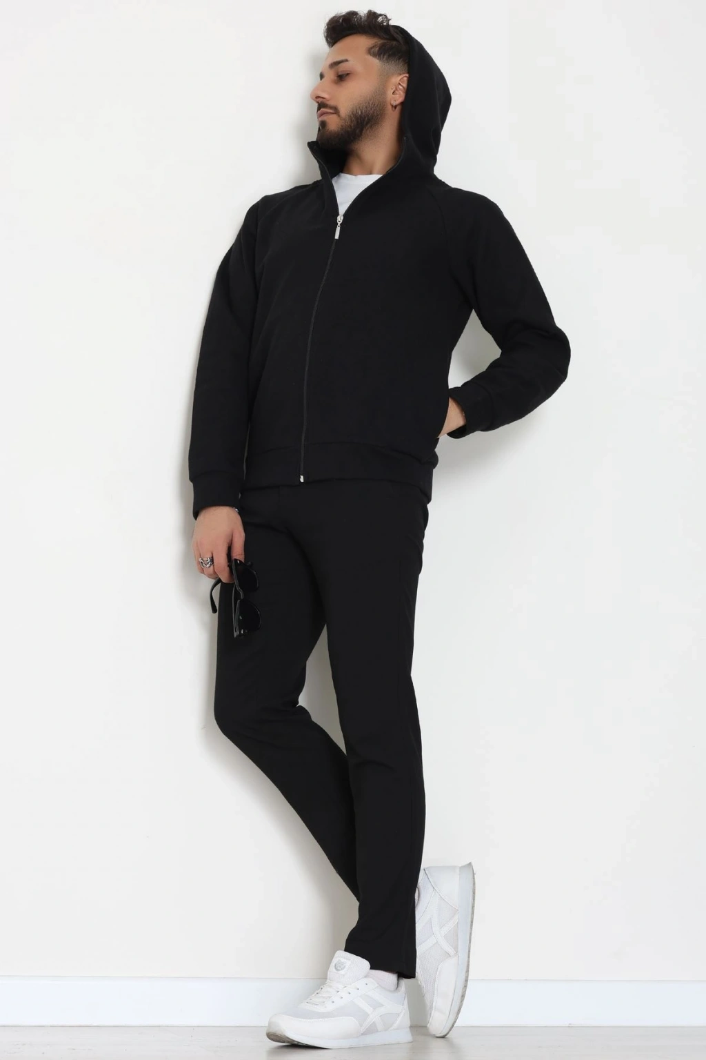 Selanik Kumaş Kapşonlu Erkek Sweat Siyah - 42799.1567.