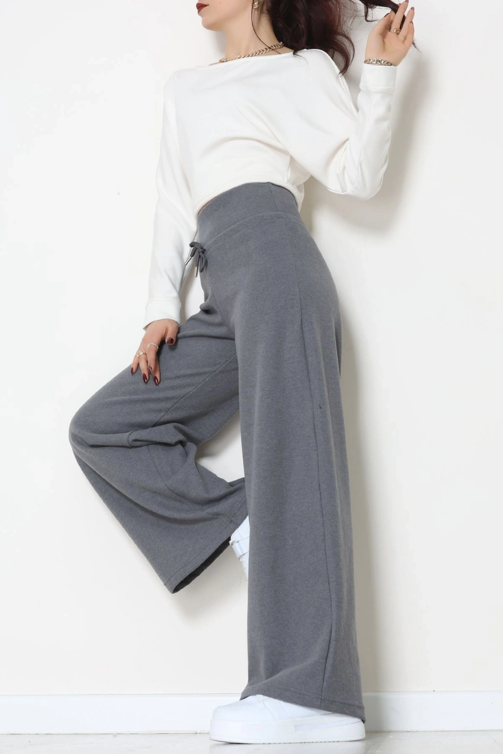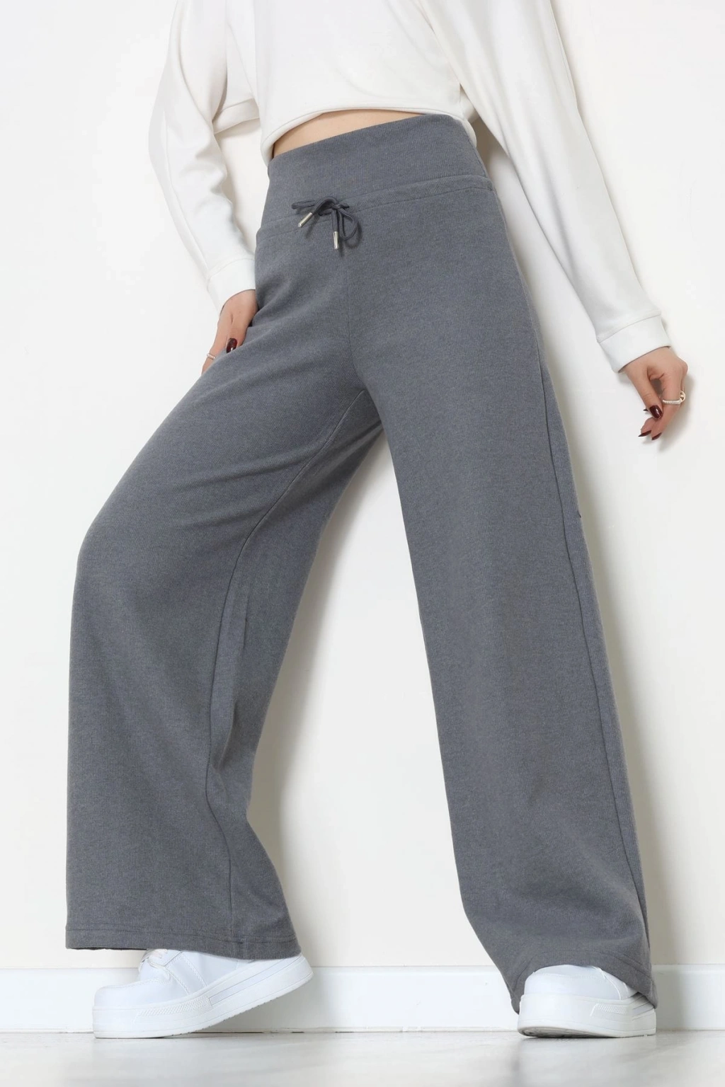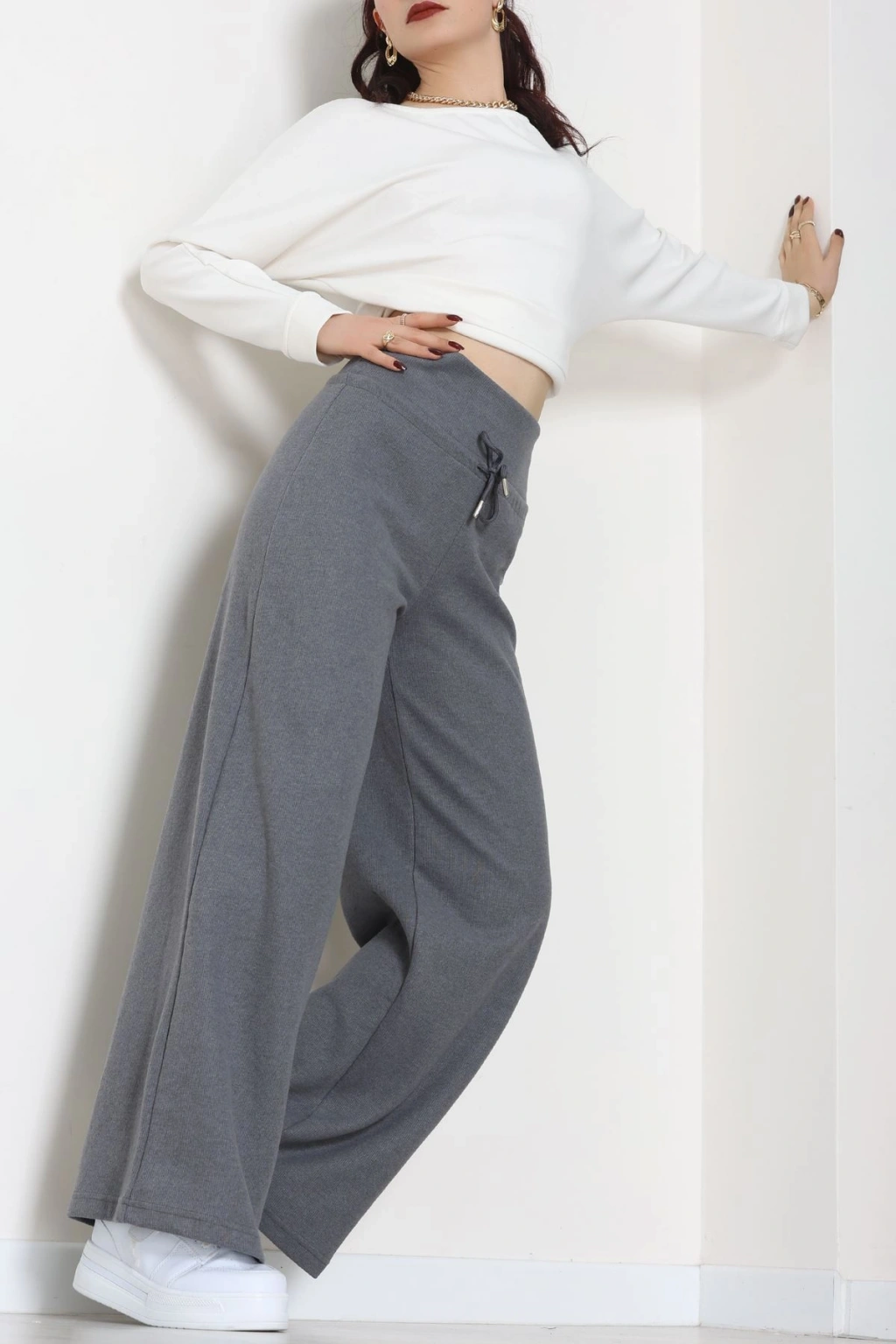 Selanik Kumaş Lastikli Palazzo Pantolon Antrasit - 51227.1567.