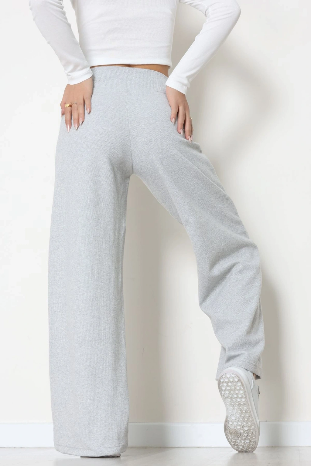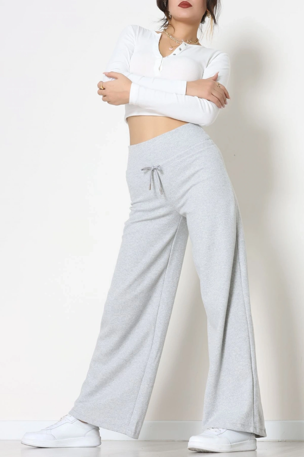 Selanik Kumaş Lastikli Palazzo Pantolon Gri - 51227.1567.