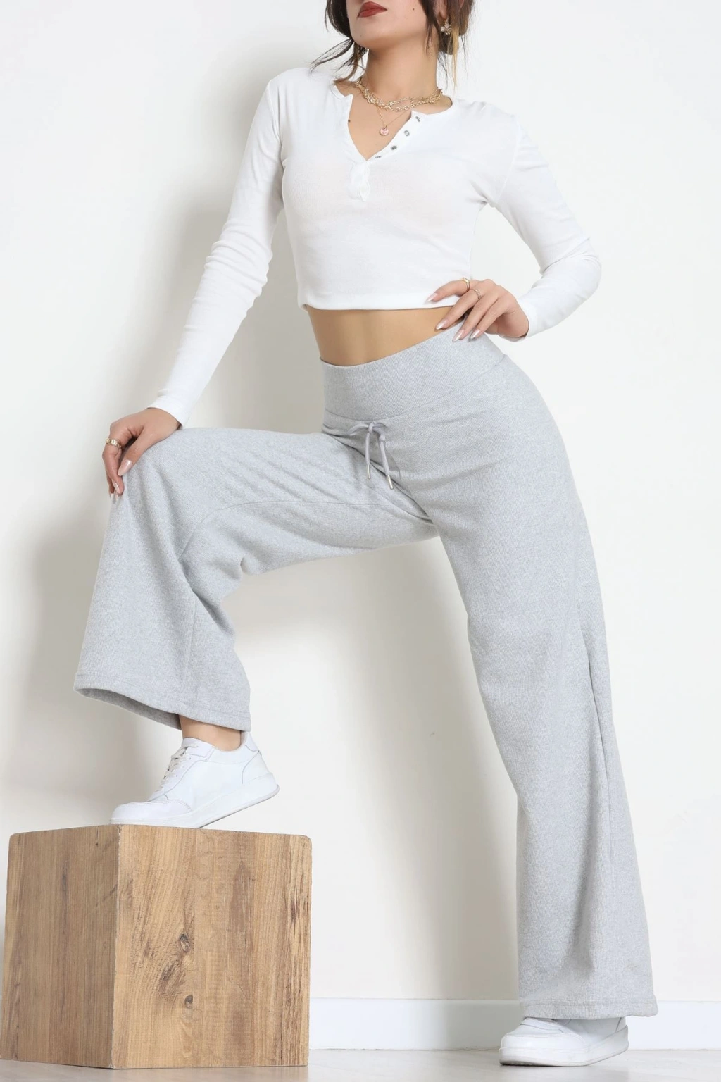 Beli Garnili Poliviskon Palazzo Pantolon Açıkgri - 51235.1920.