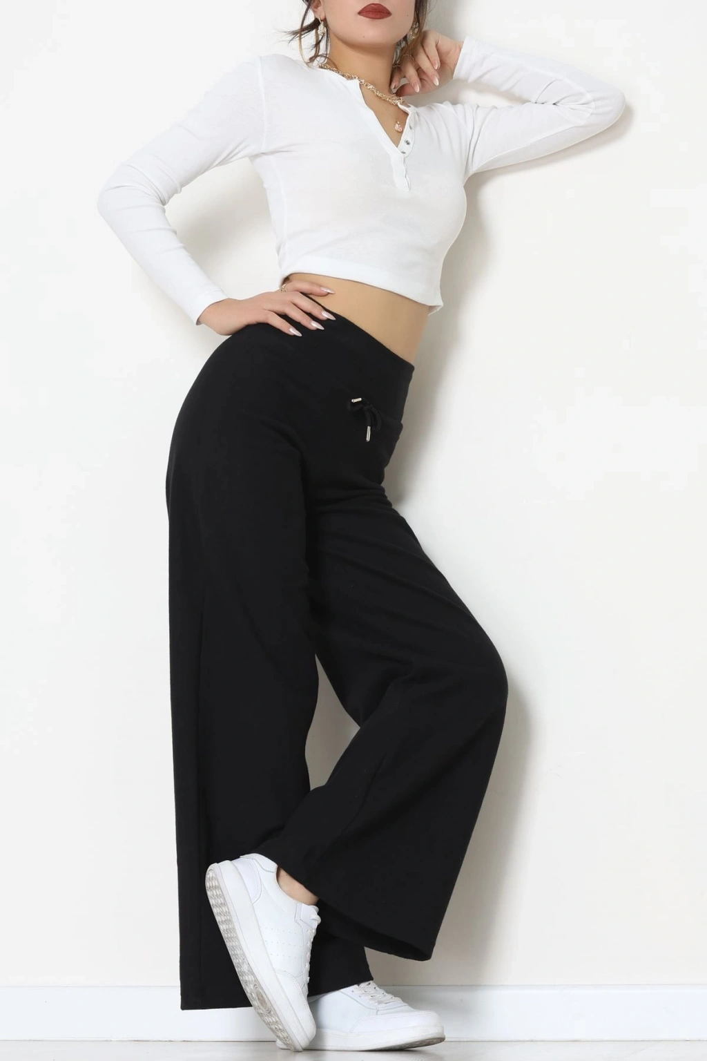 Dabıl Kumaş Beli Bağcıklı Pantolon Siyah - 51615.683.