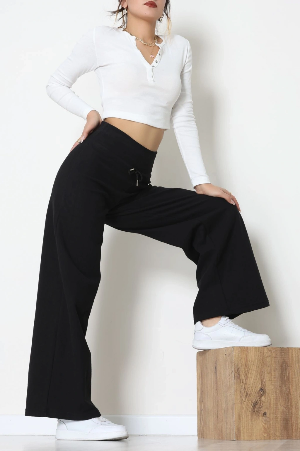 Selanik Kumaş Lastikli Palazzo Pantolon Siyah - 51227.1567.