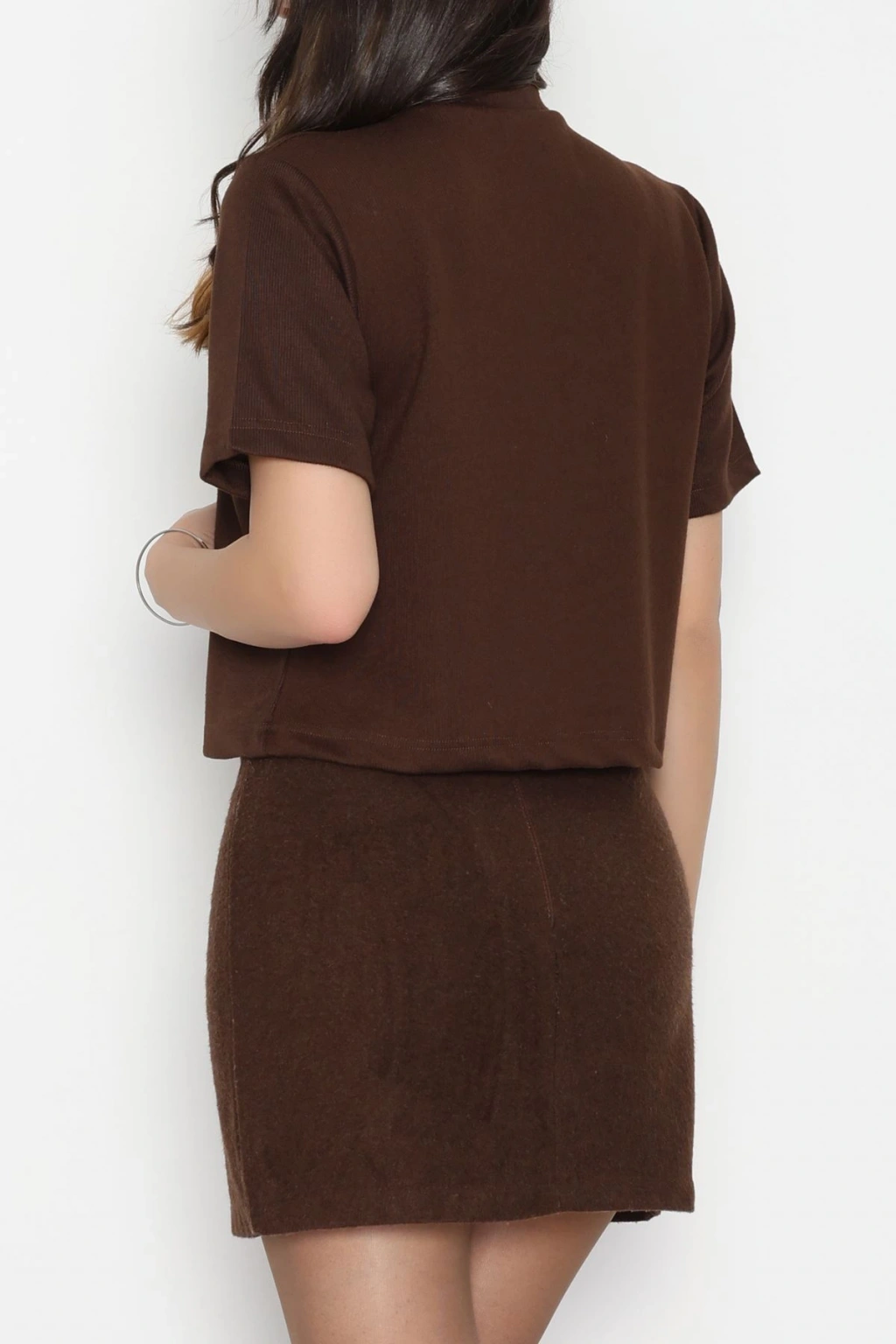 Selanik Tek Düğme Kısa Kol Hırka Kahve - 4106.1247.